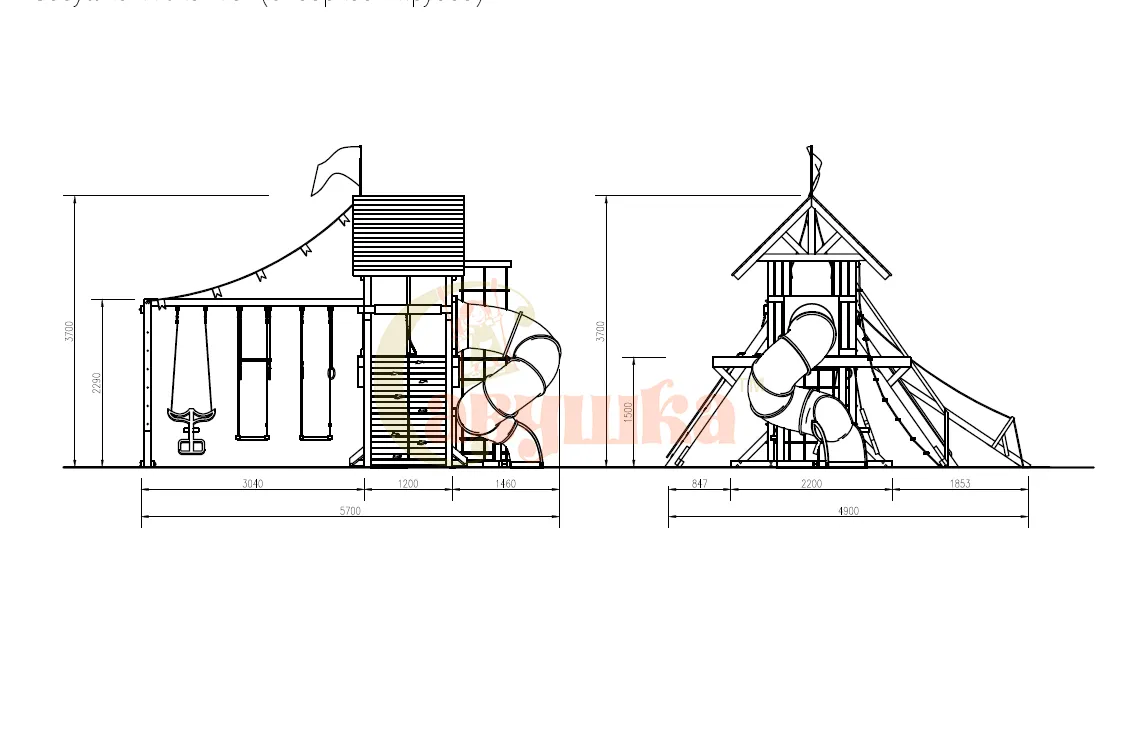 - Просторная башня с пиратским флагом — центр игры и фантазии.