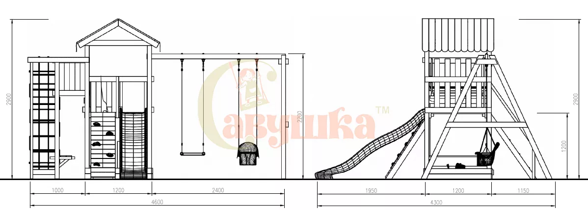Горка не оставит равнодушным ни одного ребенка. Скатившись вниз, сразу захочется покачаться на качелях, и здесь они не в единственном экземпляре. На выбор предлагаются: «Лодочка», «Люкс», «Trix» и наиболее популярные сейчас «Гнездо». Навесное оборудование качественное, изготовлено в Бельгии.