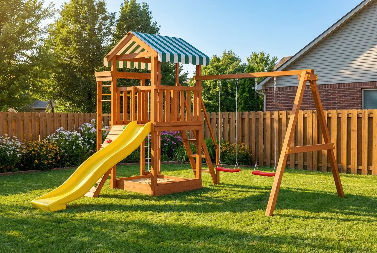 Родители могут быть уверены: площадка устойчива, выдерживает активные игры и рассчитана на долгие годы эксплуатации.