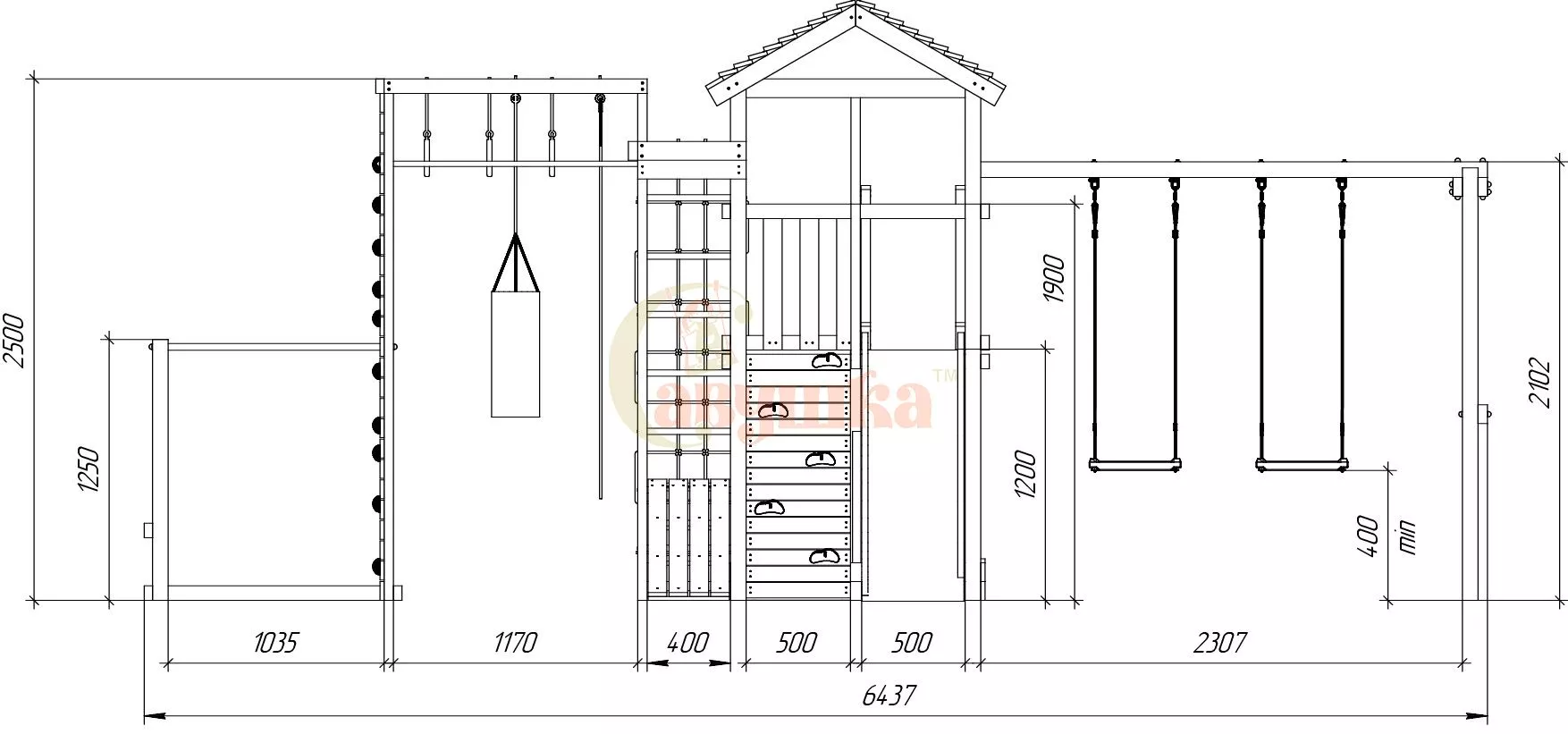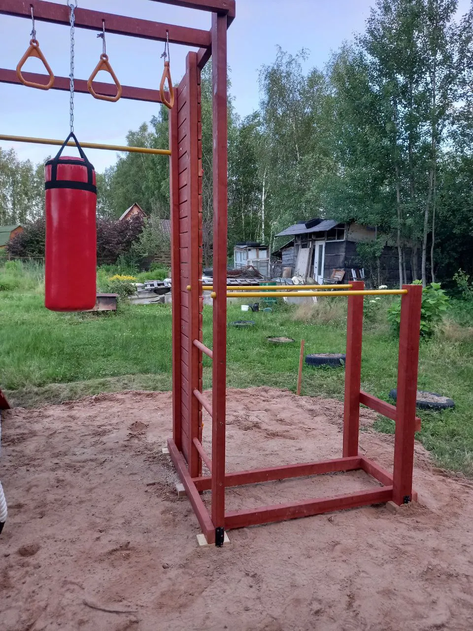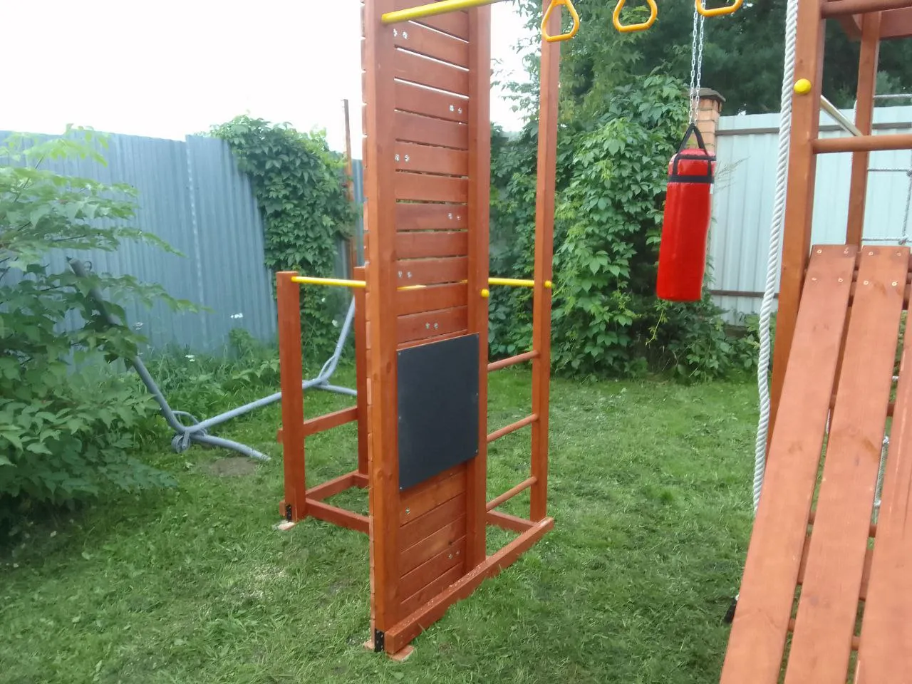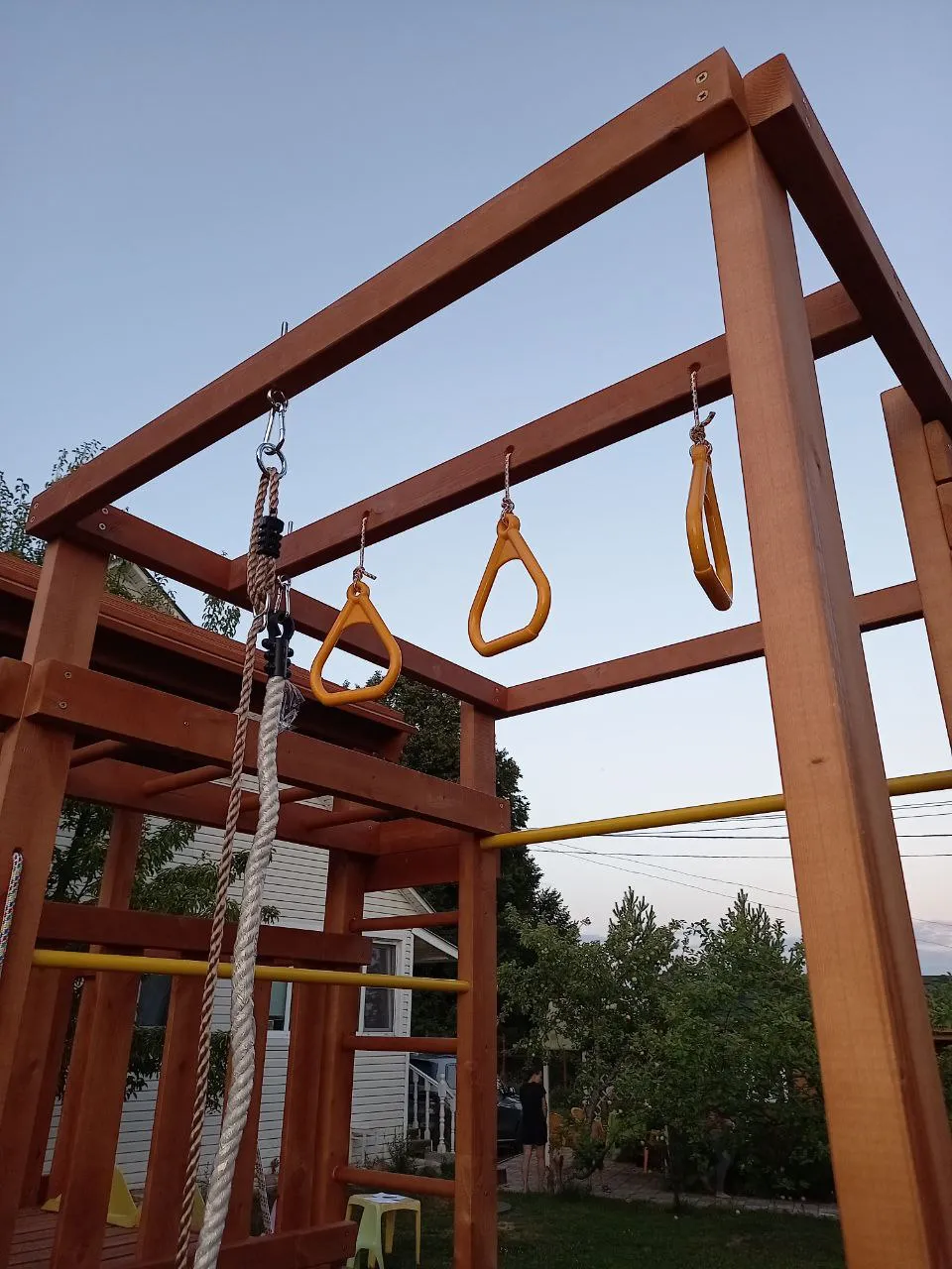 Благодаря спортивным элементам дети могут тренировать мышцы, улучшать гибкость и координацию движений. Рукоход, гимнастические кольца, турники и скалодром делают занятия спортом увлекательными, а разнообразные качели и горка добавляют радость в каждую игру.