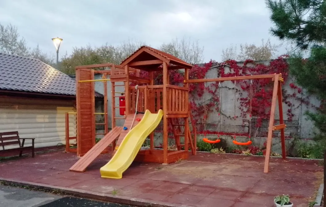 Конструкция устойчива к погодным условиям, а продуманное расположение элементов делает площадку удобной и функциональной.