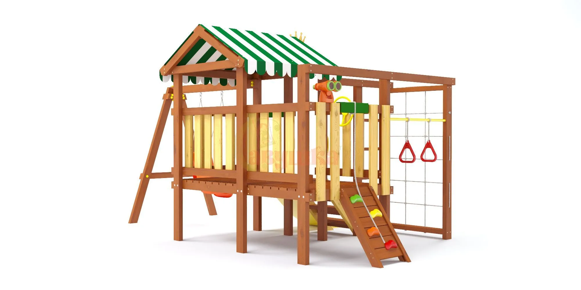 Универсальная площадка с высокой платформой (600 мм), на которой расположен обзорный игровой балкон, понравится вашим малышам.