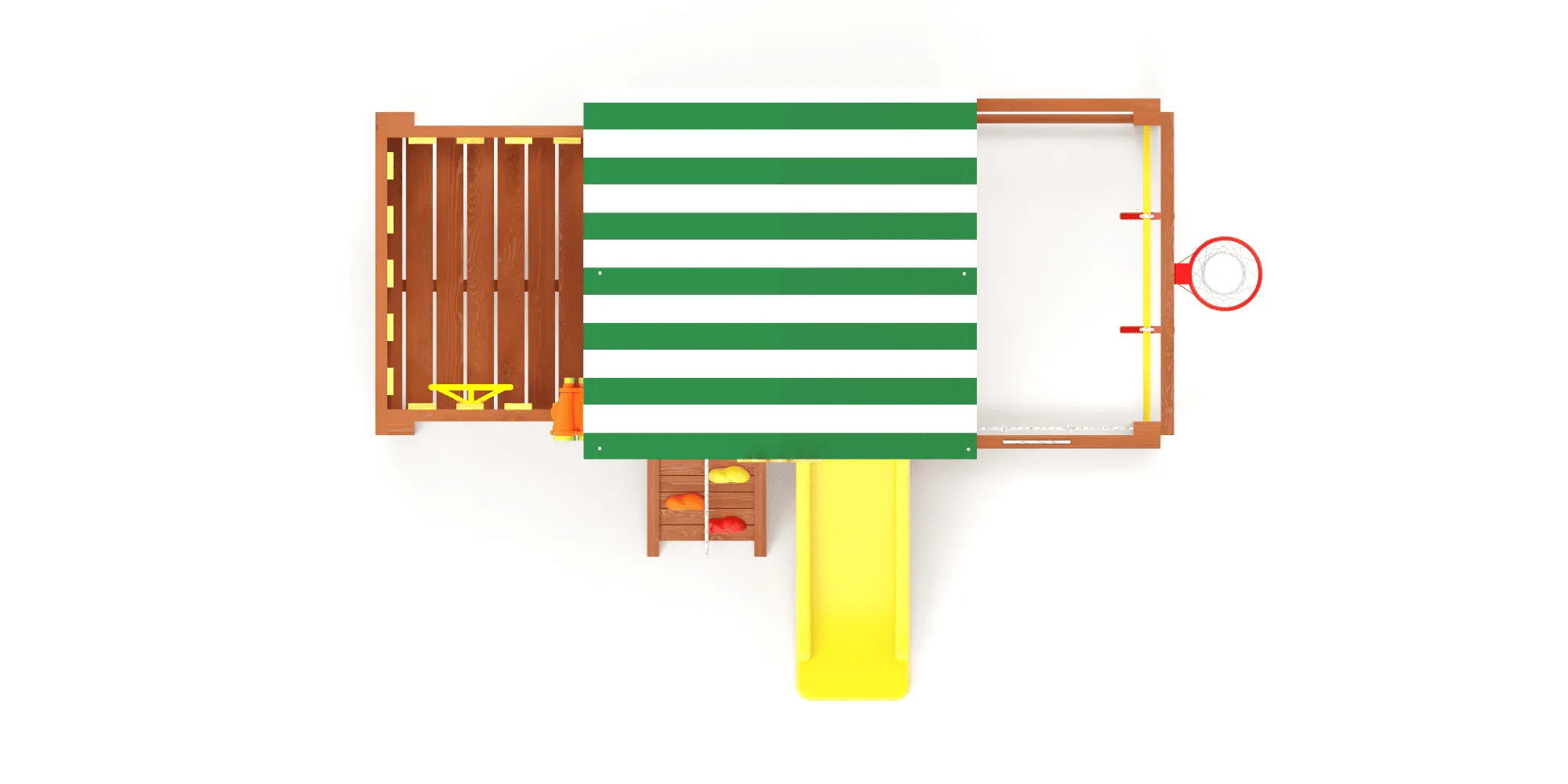 Чтобы дети развивались физически, наши инженеры добавили в комплекс шведскую стенку. Она прекрасно развивает мышечный корсет и готовит к школьным нагрузкам. Для будущих гимнастов и гимнасток есть удобный металлический турник (элементы окрашены порошковой краской) и гимнастические кольца. Здесь же находится сетка-лазалка – она поможет развить чувство равновесия, укрепить мышцы рук.