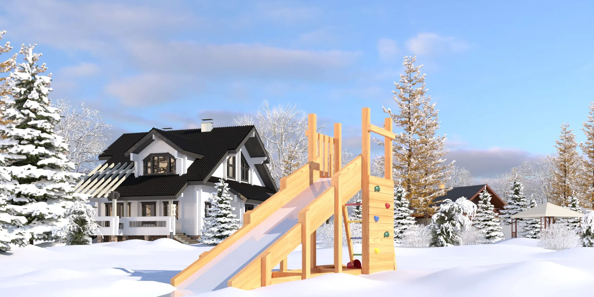 - Зимний скат и пластиковая горка — игры без перерыва на сезоны.