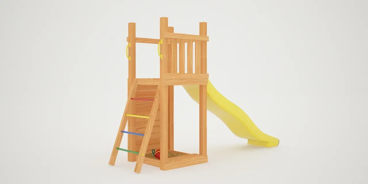Конструкция выполнена из клеёного бруса по ГОСТ. Гладкие поверхности, скруглённые углы, закрытые крепежи — безопасность в каждой детали. Площадка устойчива, долговечна и полностью экологична.