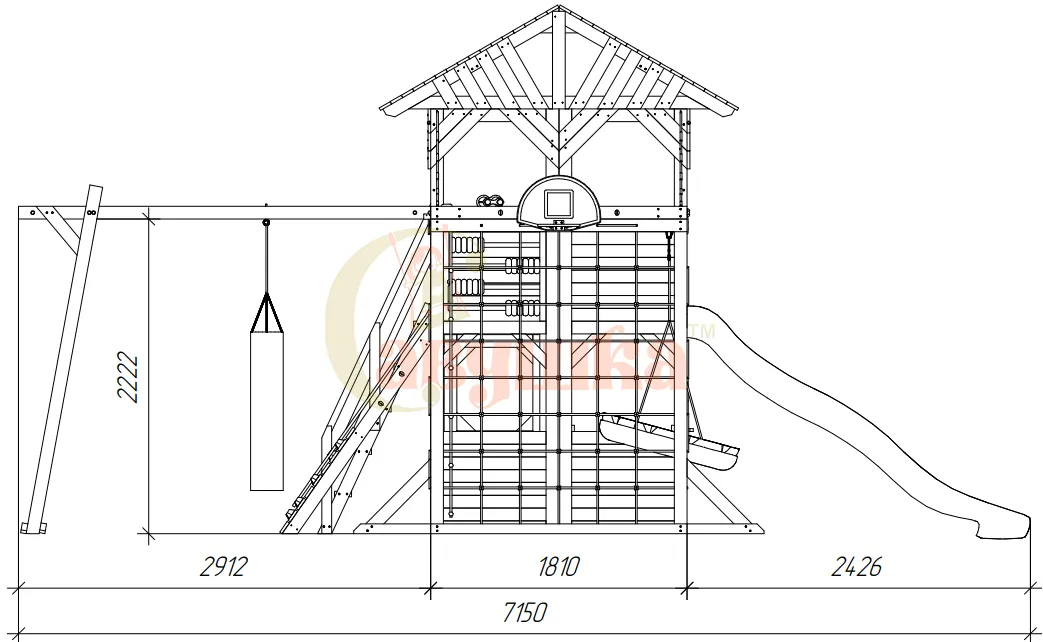 Этот комплекс сочетает в себе игровую и спортивную площадку, а также уютный детский домик с просторным игровым пространством. Он открывает двери в мир сказочных приключений для детей разного возраста (от 3 до 16 лет), развивая их физические способности и воображение.