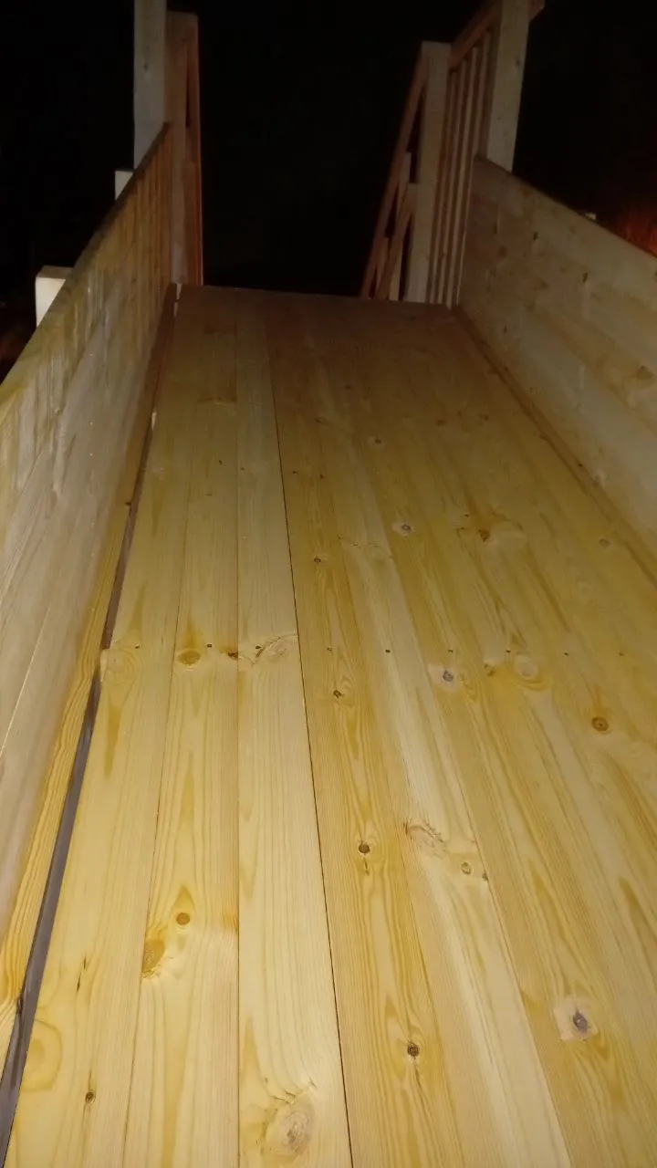 - Каркас башни и несущие конструкции – клееный брус 90×90 мм (выдерживает высокие нагрузки и многолетнюю эксплуатацию)