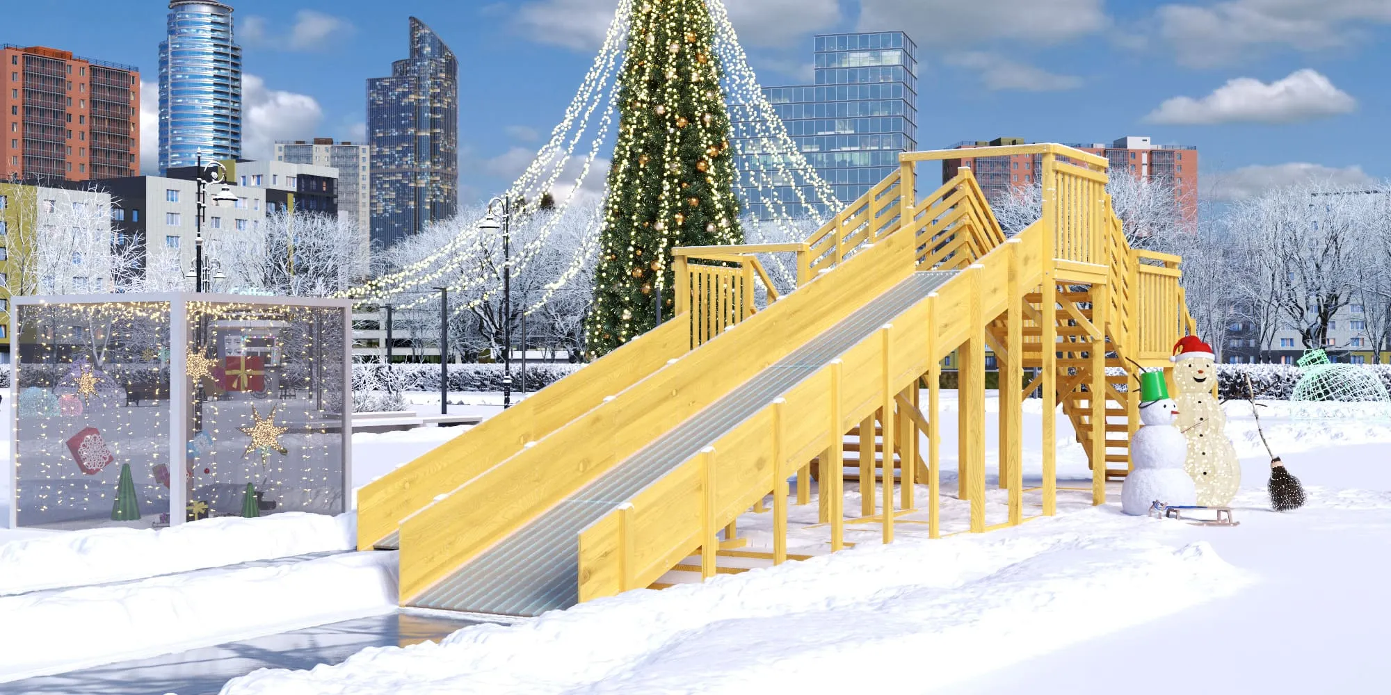 Зимняя горка Савушка Wood Зима 7/5 — многоуровневая конструкция с двумя длинными скатами (5 и 7,68 м). Подходит для установки как во дворах и дачах, так и в общественных местах. Прочный клееный брус, соответствие ГОСТ делают горку надежной и долговечной. Есть Декларация ТР ЕАЭС 038/2016.