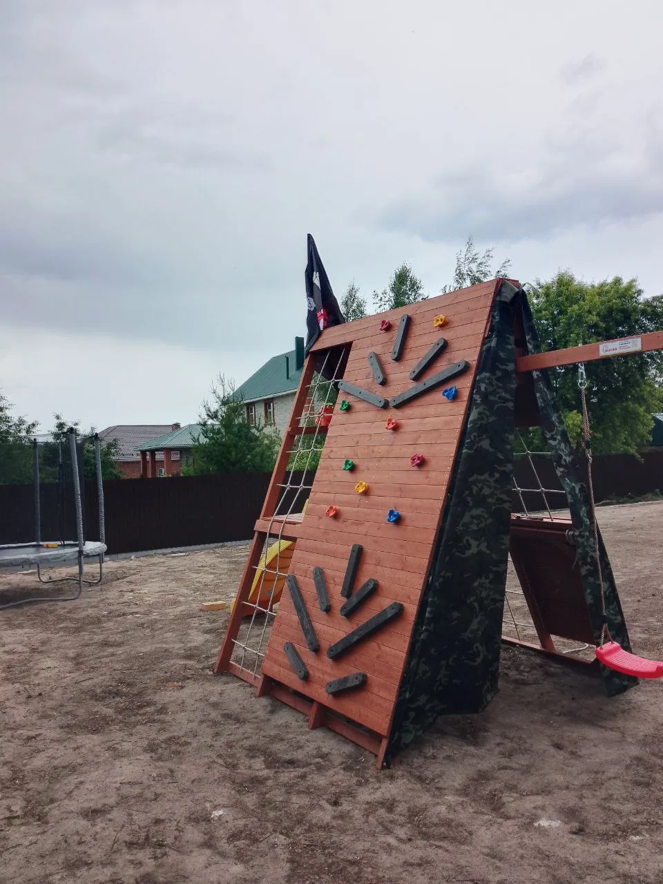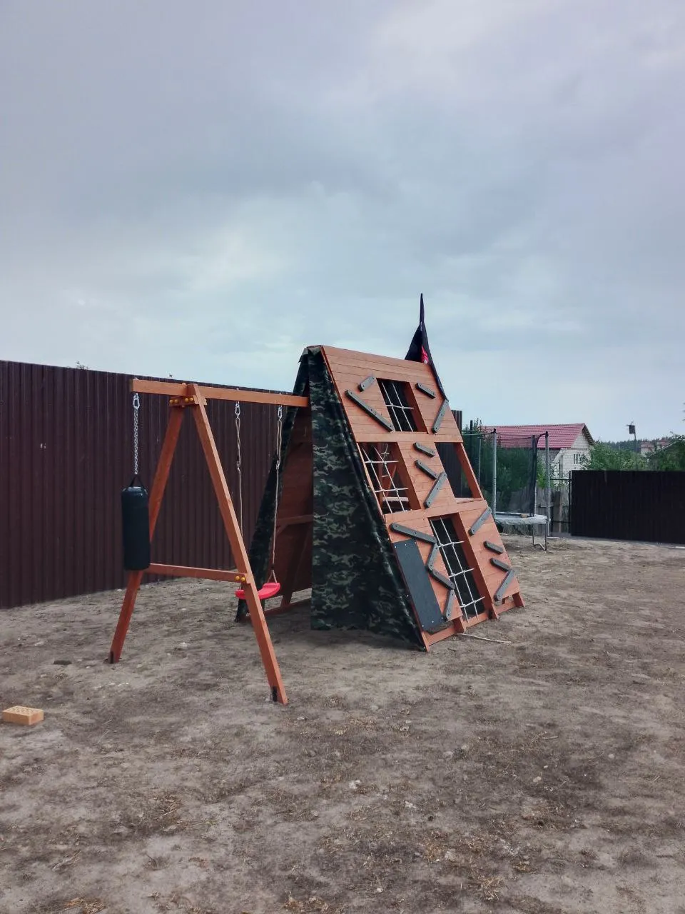 Спортивный домик Савушка База-2 (Милитари) - уникальный дизайн и конструкция, которая понравится не только детям, но и взрослым. Специально созданный для дачных участков и коттеджей, этот домик с игровым пространством внутри станет настоящей находкой для всех любителей активного отдыха.