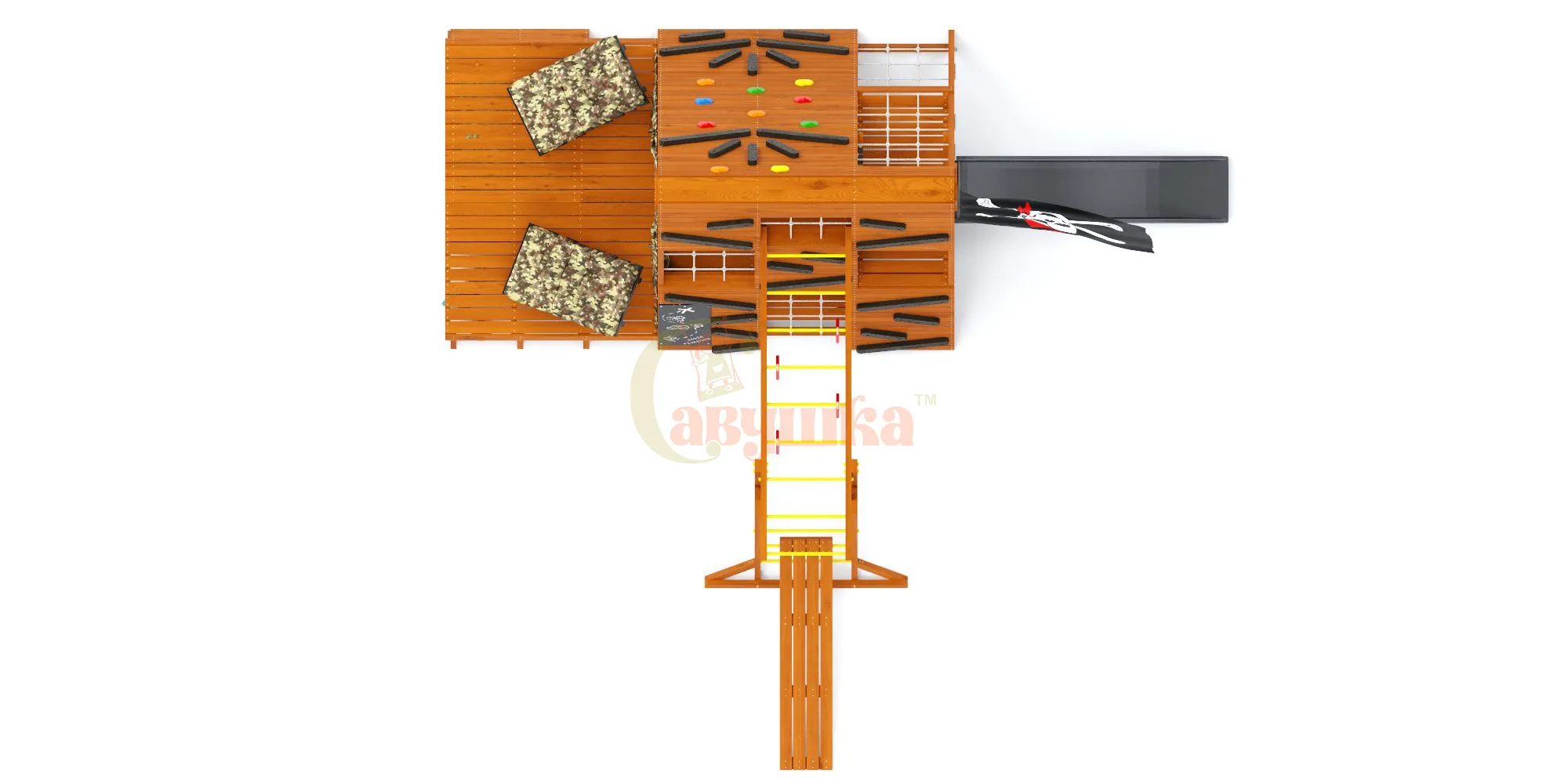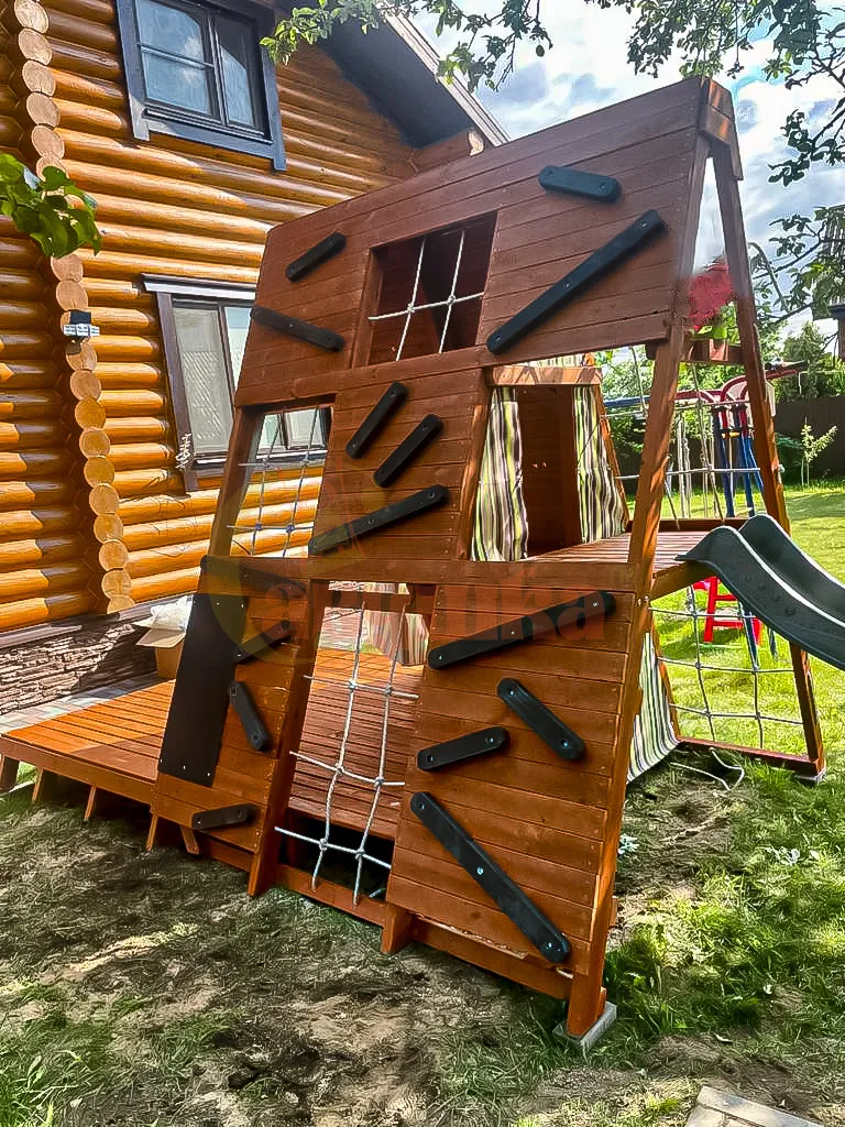 Безопасность в домике Савушка База-5 (Милитари) – это экологически чистые материалы из массива дерева, краска на водной основе с разрешающими сертификатами и острые углы, которые были округлены. Купить этот игровой комплекс на дачу – это правильный выбор для занятий спортом на свежем воздухе. Приобретайте детскую площадку для детей прямо сейчас!