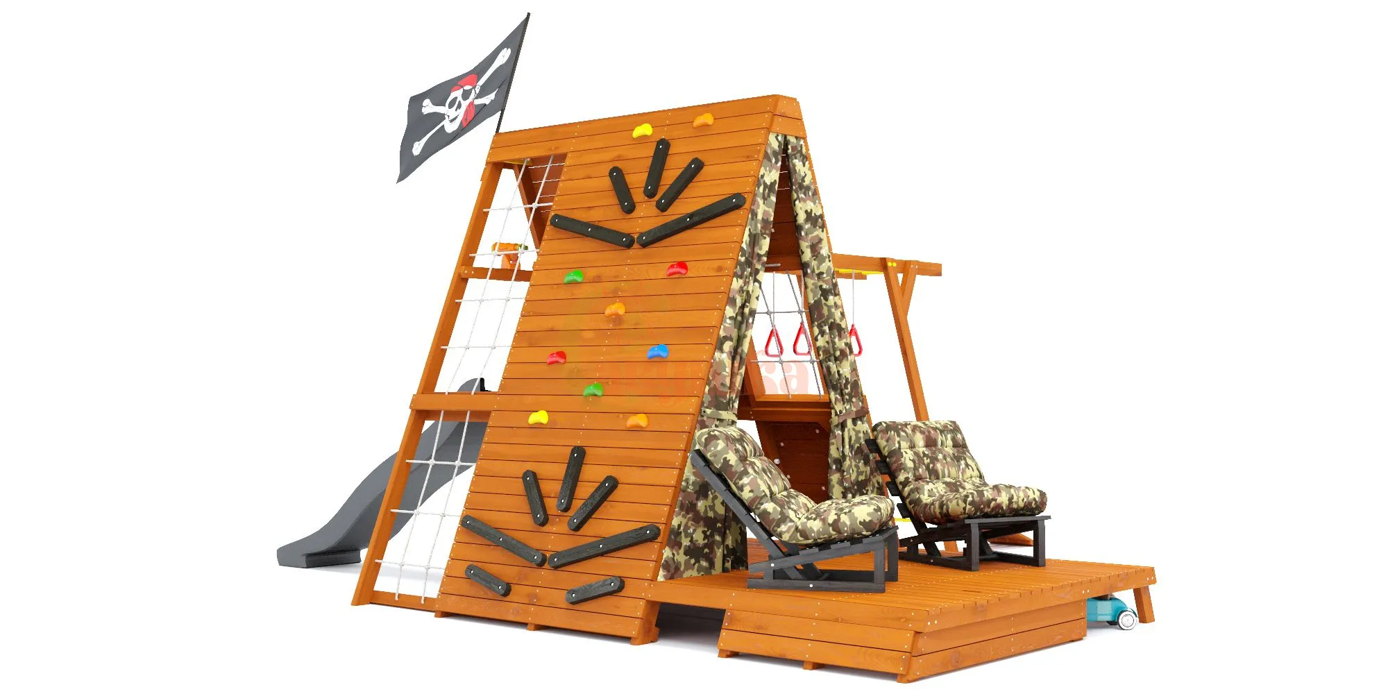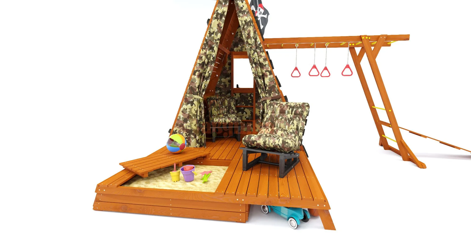 Вы ищете идеальное место для занятий спортом на свежем воздухе для своих детей? Рекомендуем обратить внимание на спортивный домик Савушка База-5 (Милитари) с креслами.