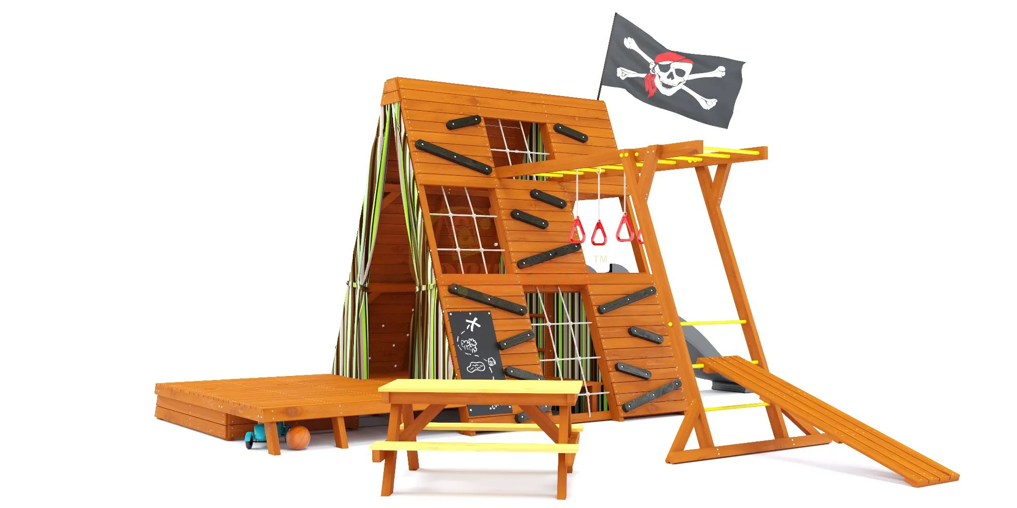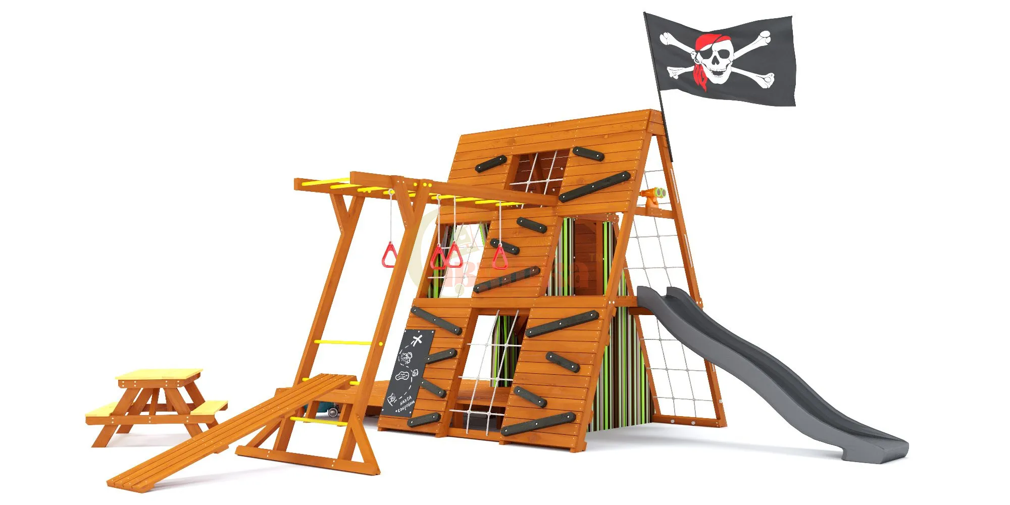 Этот удивительный игровой комплекс изготовлен исключительно из экологически чистых материалов, что делает его безопасным для детского здоровья. Внутри домика находится большой деревянный пол, на котором дети могут играть в разные игры, заниматься спортом и просто весело проводить время.