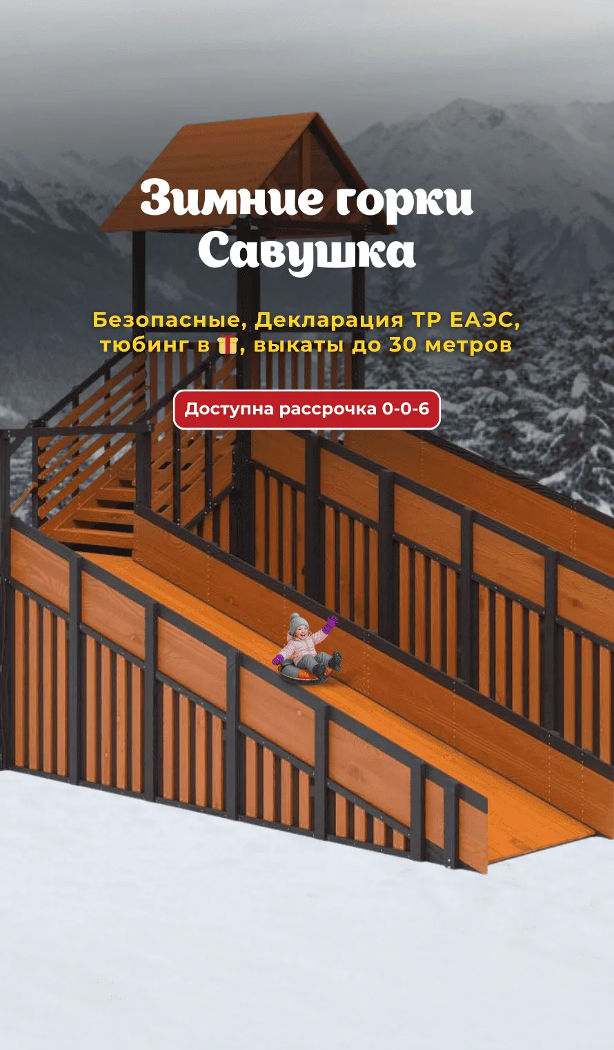 Зимние горки Савушка ЕАС 2026 для частных дворов, парков, баз отдыха и др. общественных мест