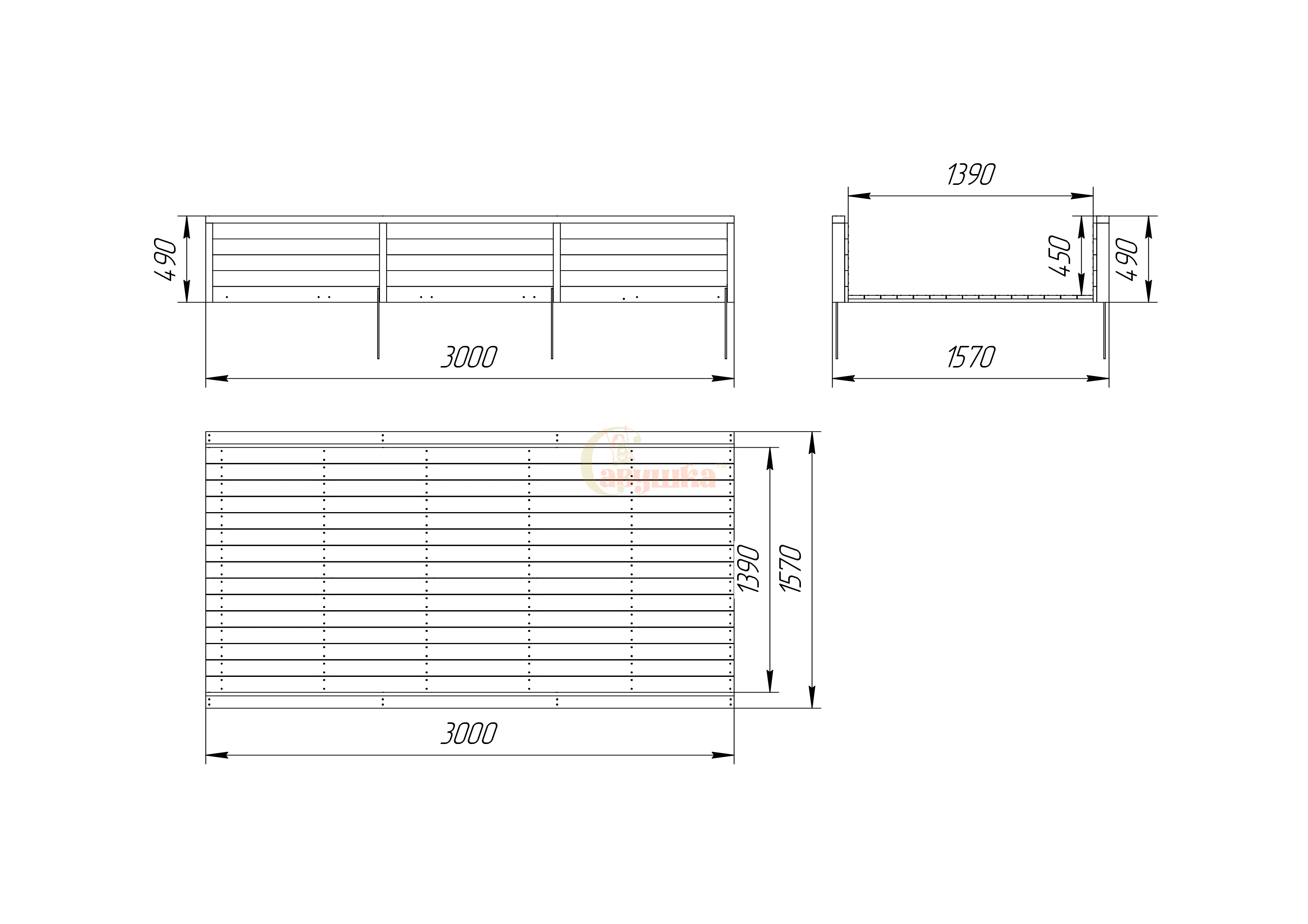 Выкат для зимней горки Савушка Тип №2, секция 3 м (ширина 1350 мм)