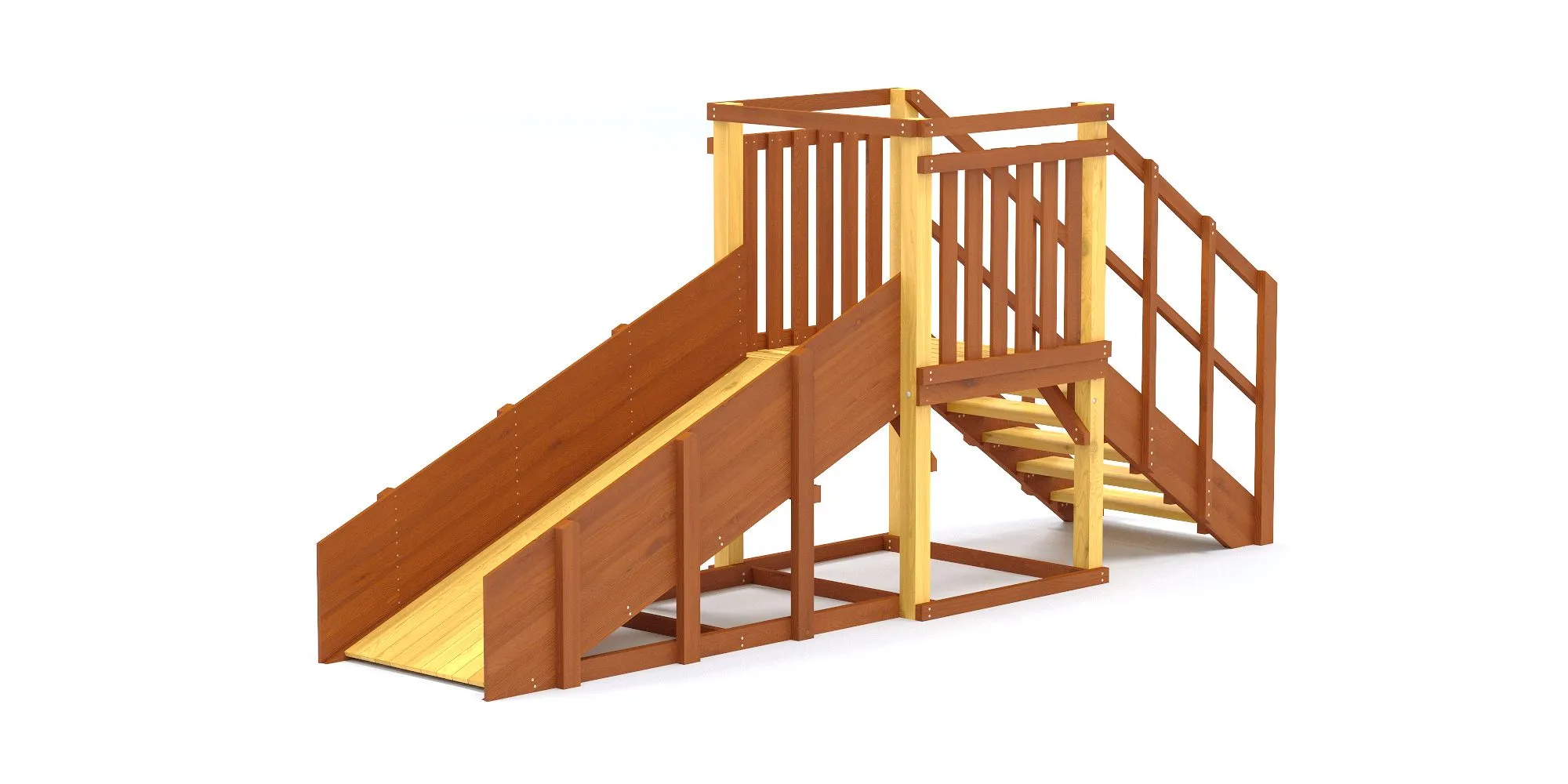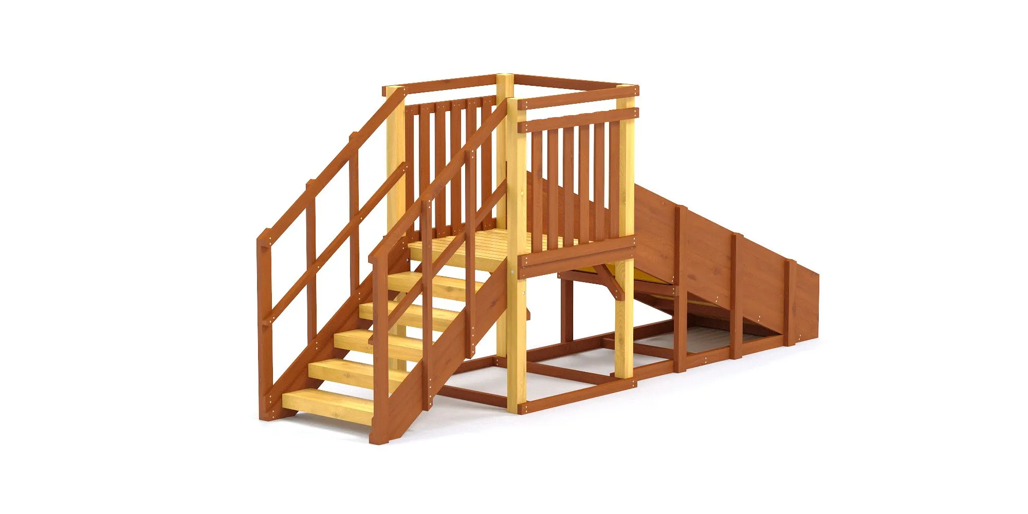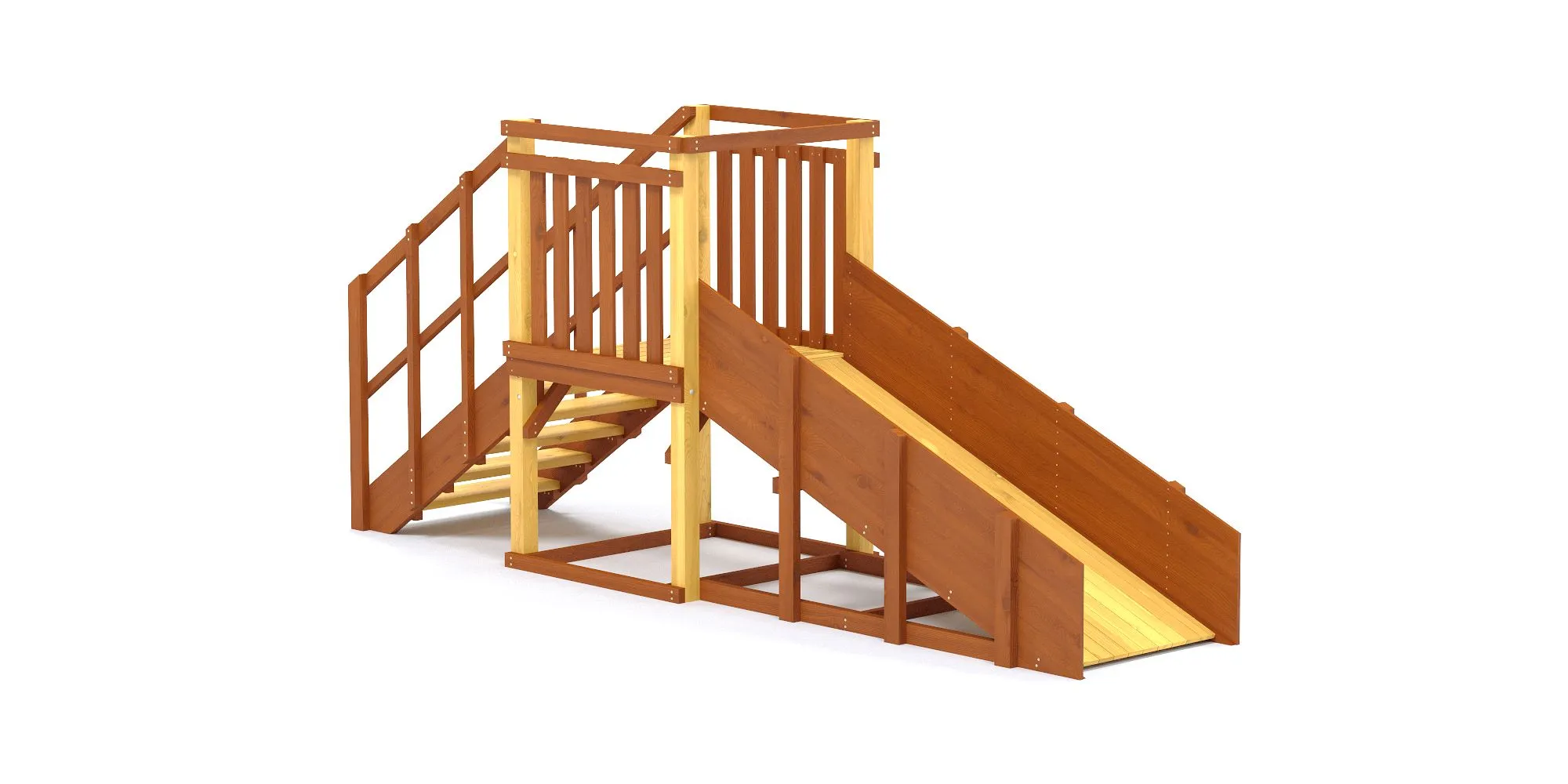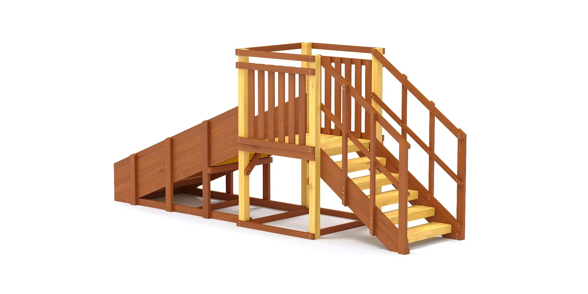 - Лестница с перилами и высокие бортики на спуске — защита для активных игр.