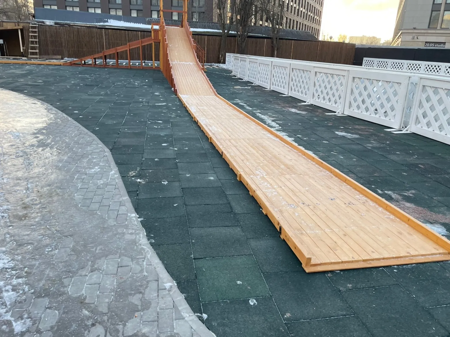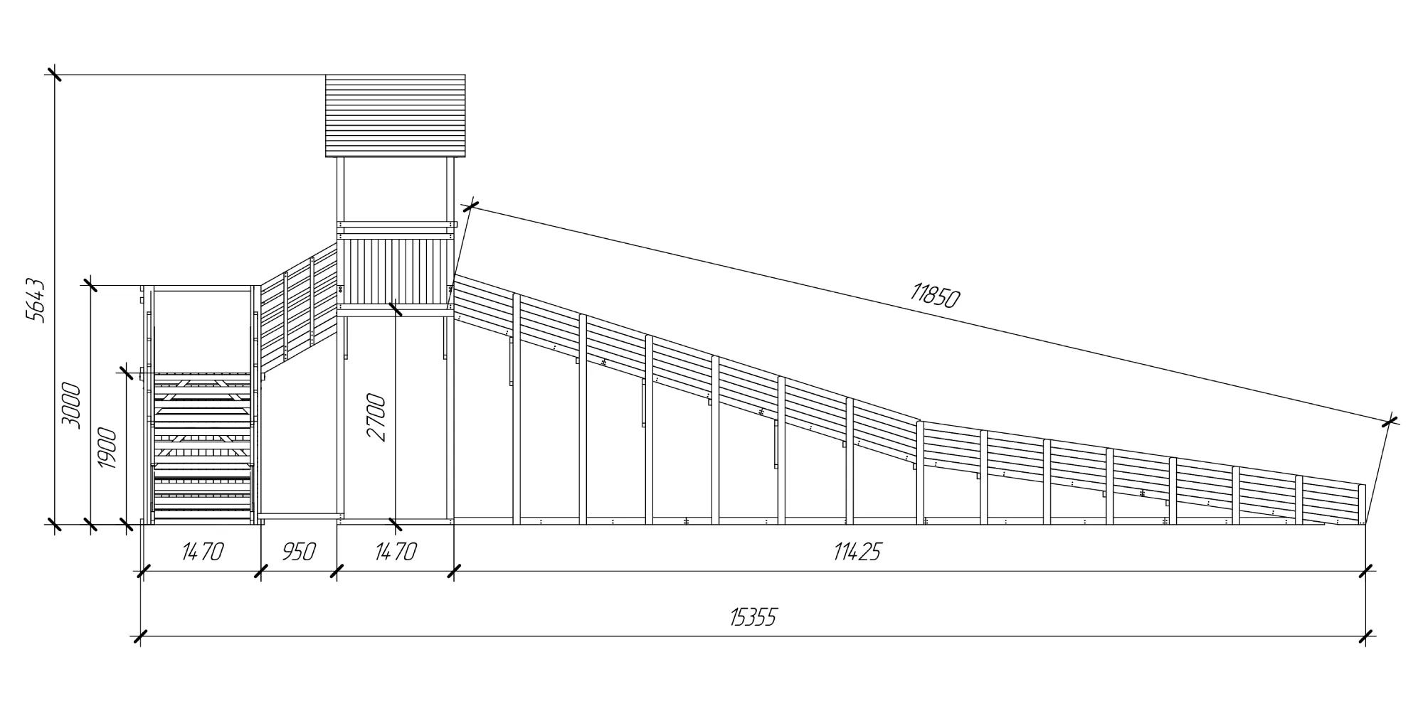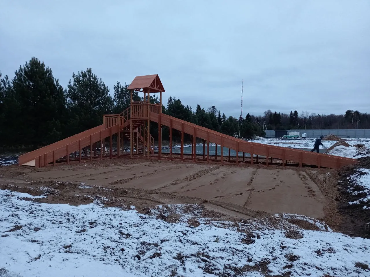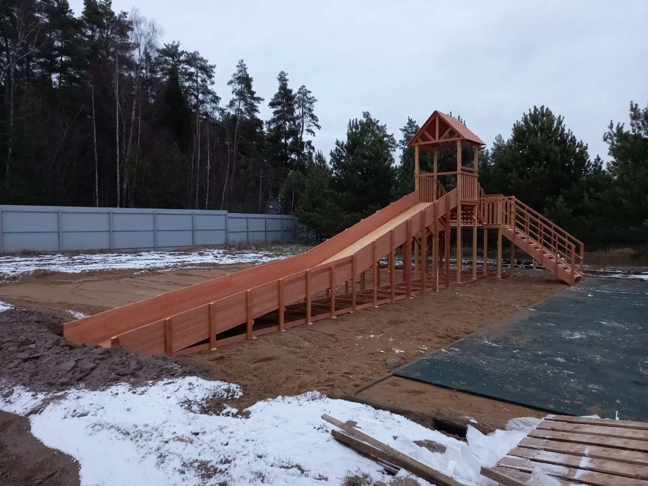 - Крыша на верхней платформе — защита от снега и комфорт при любой погоде.