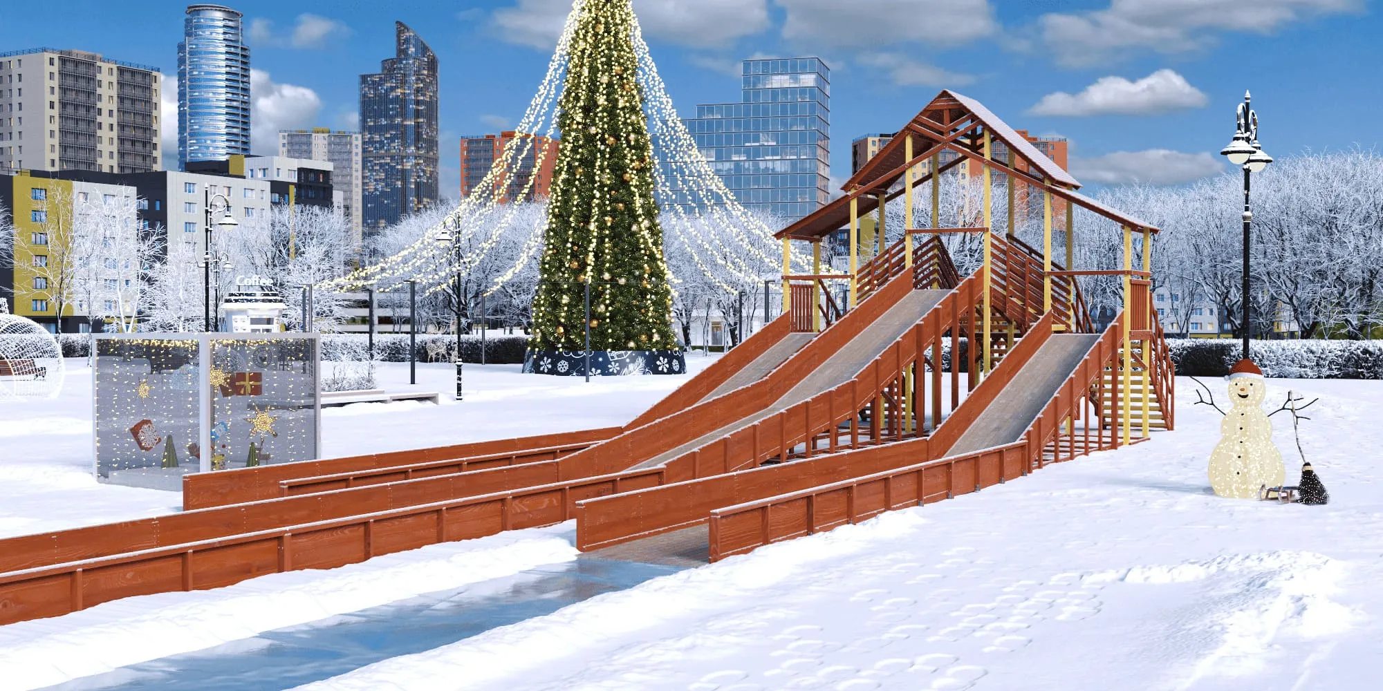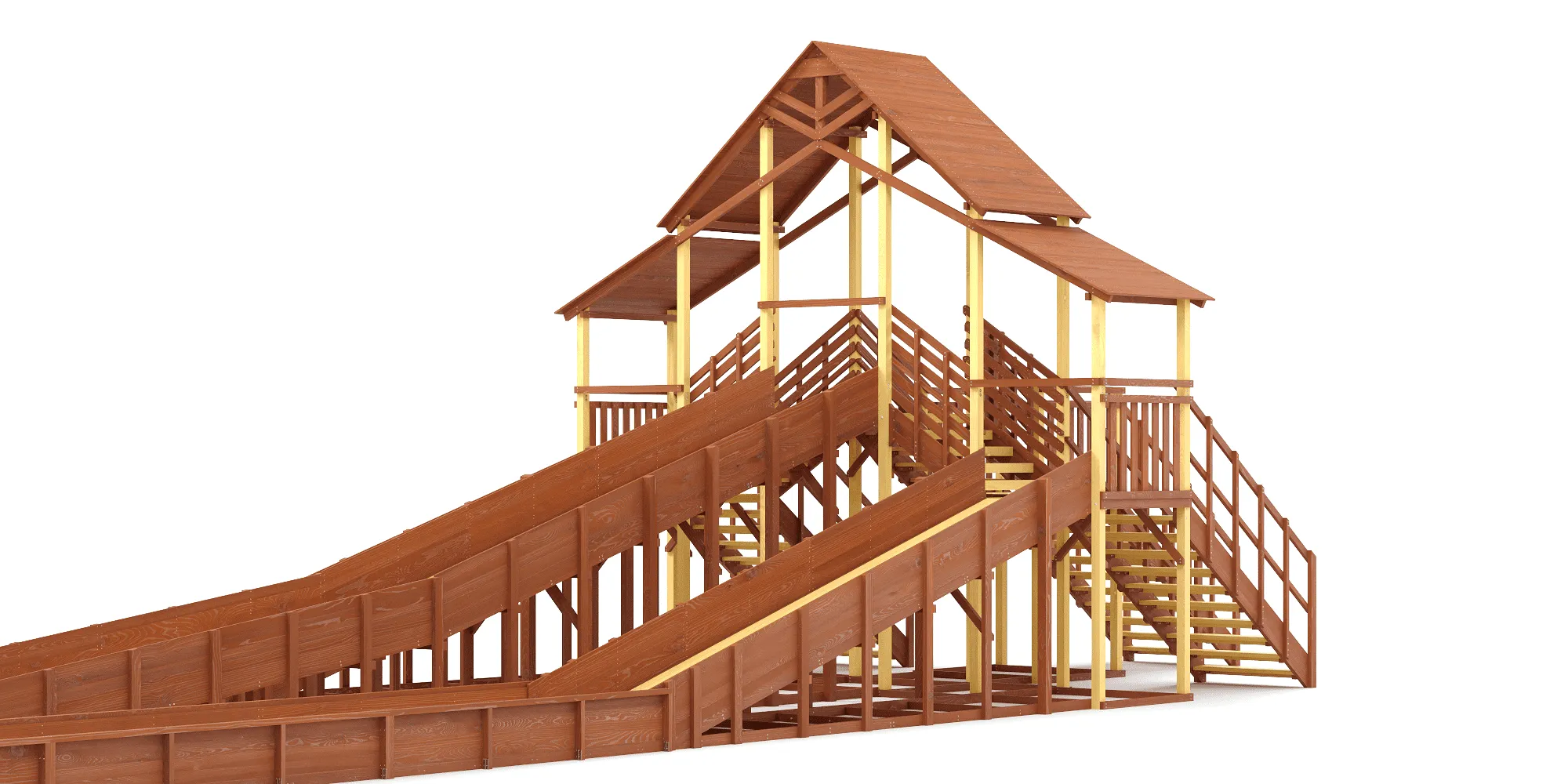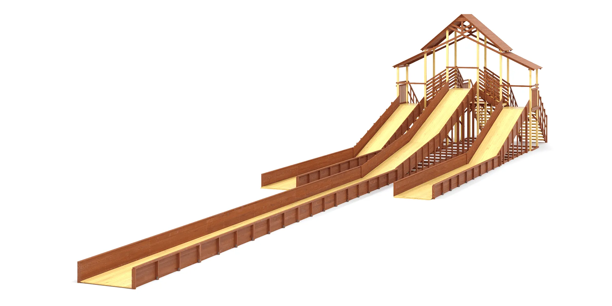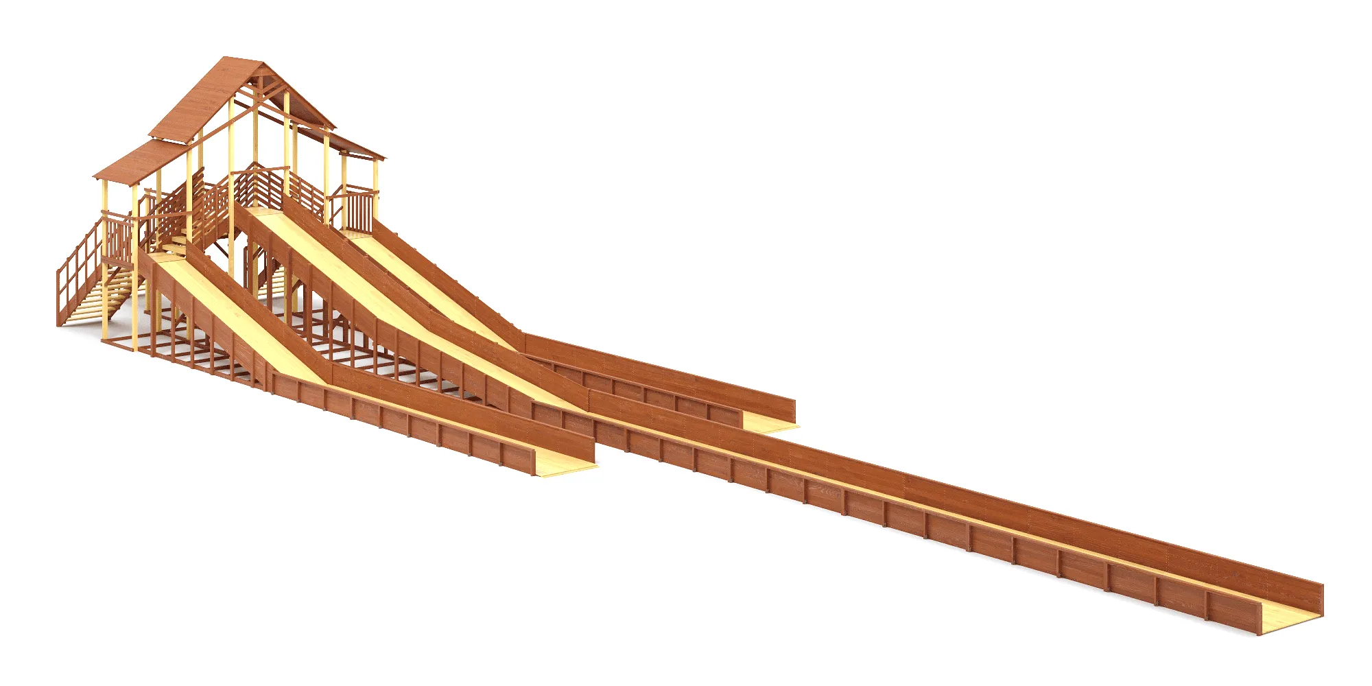 Зимняя горка Савушка Зима 11/1 в цвете Махагон/Сосна — это три мощных ската длиной до 30 метров, которые превращают любую площадку в центр зимнего веселья! Прочная двухуровневая конструкция, широкие лестницы и высокие ограждения делают катание максимально безопасным.