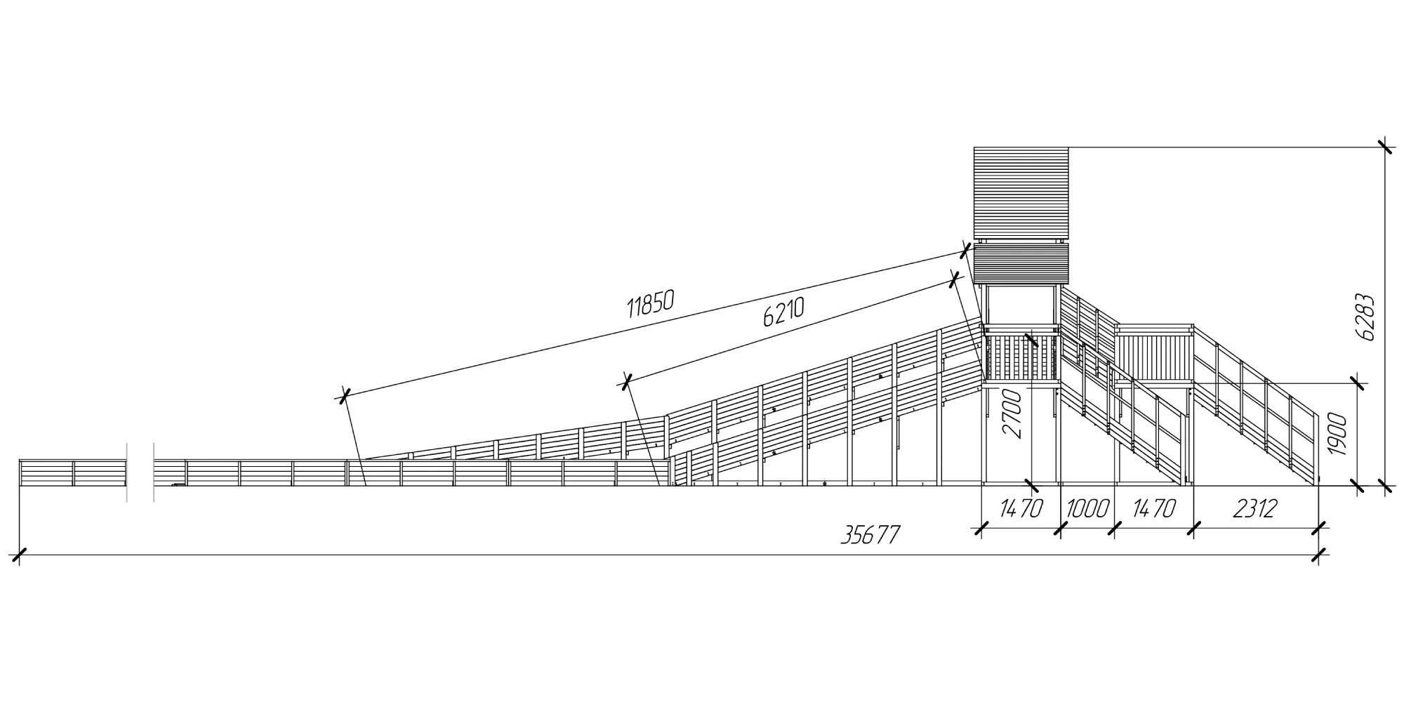 - Безопасность: широкие лестницы, антискользящие ступени и высокие бортики.