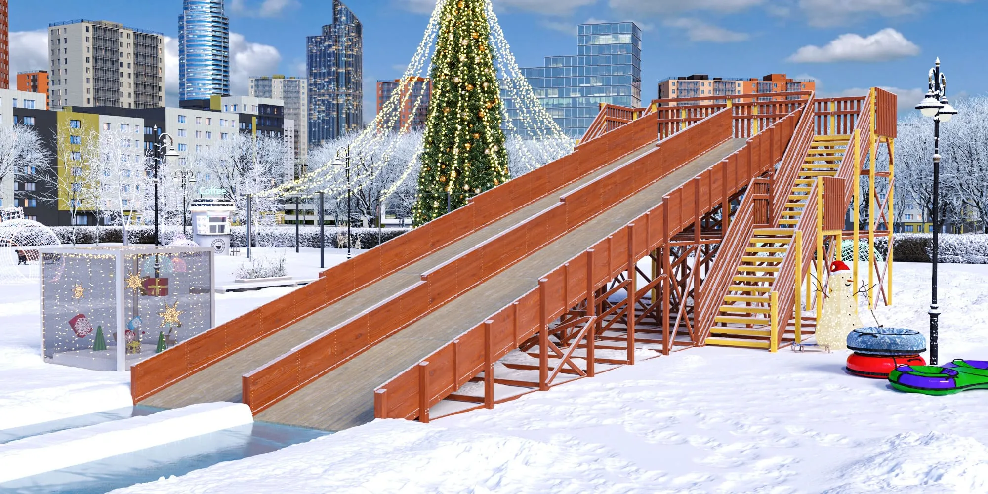 - Два длинных ската (18 м) создают атмосферу настоящих зимних приключений.