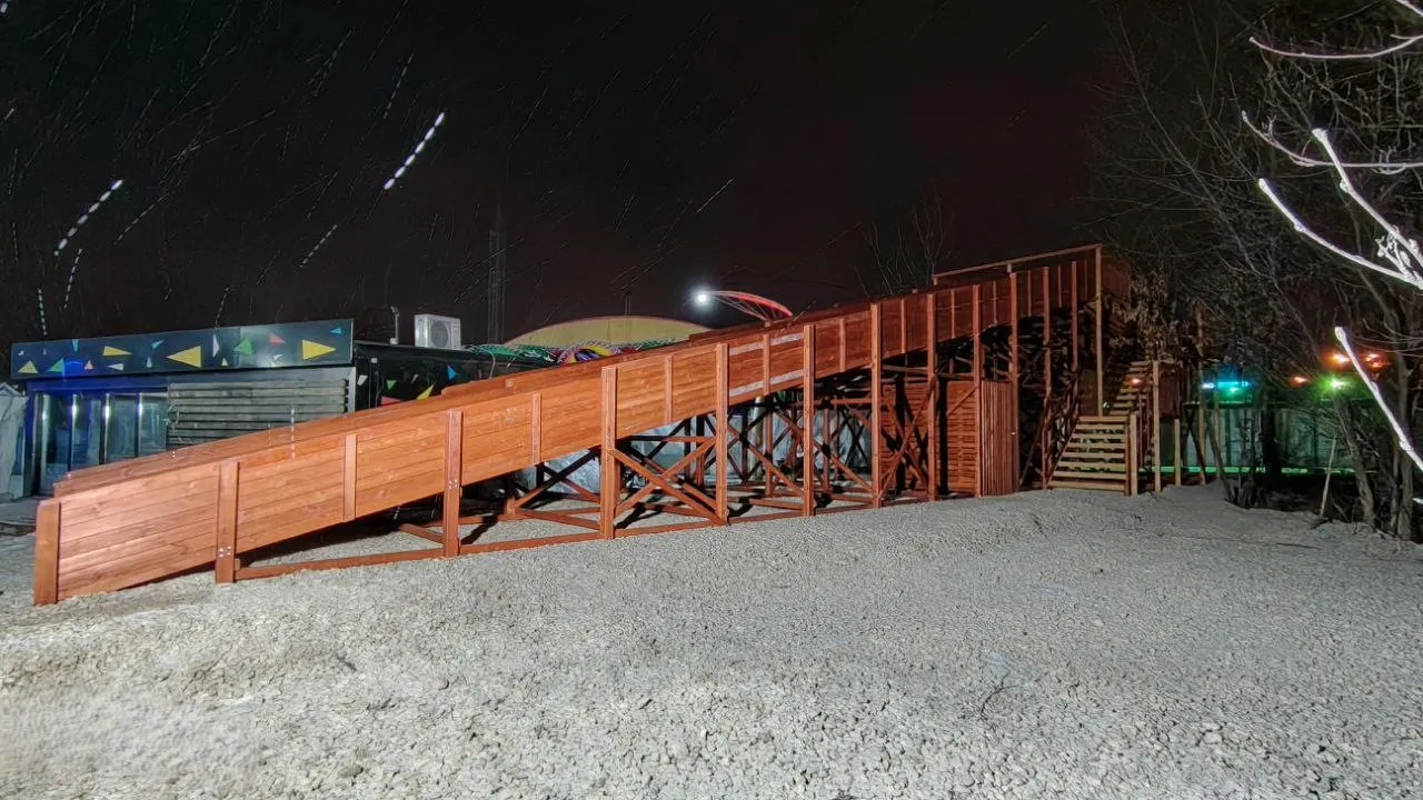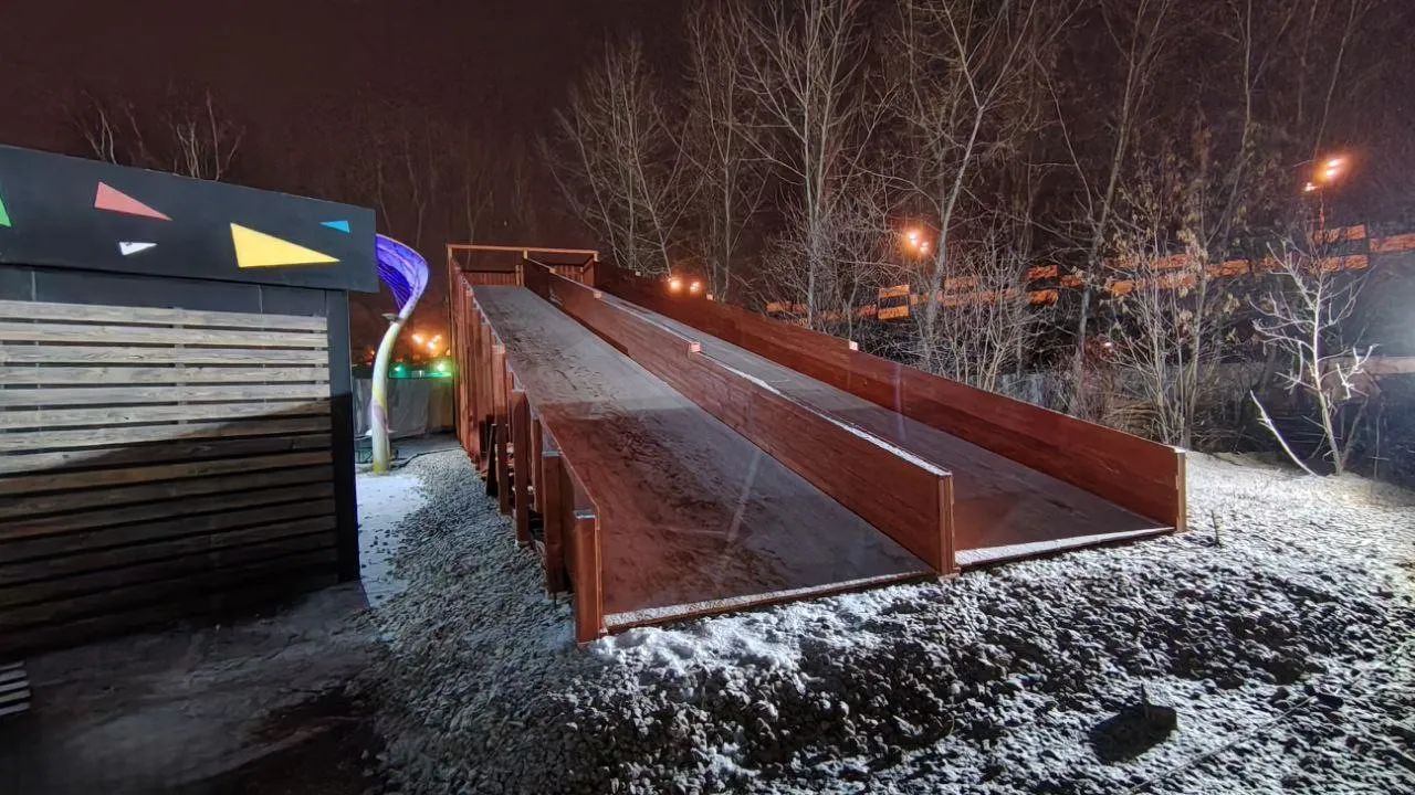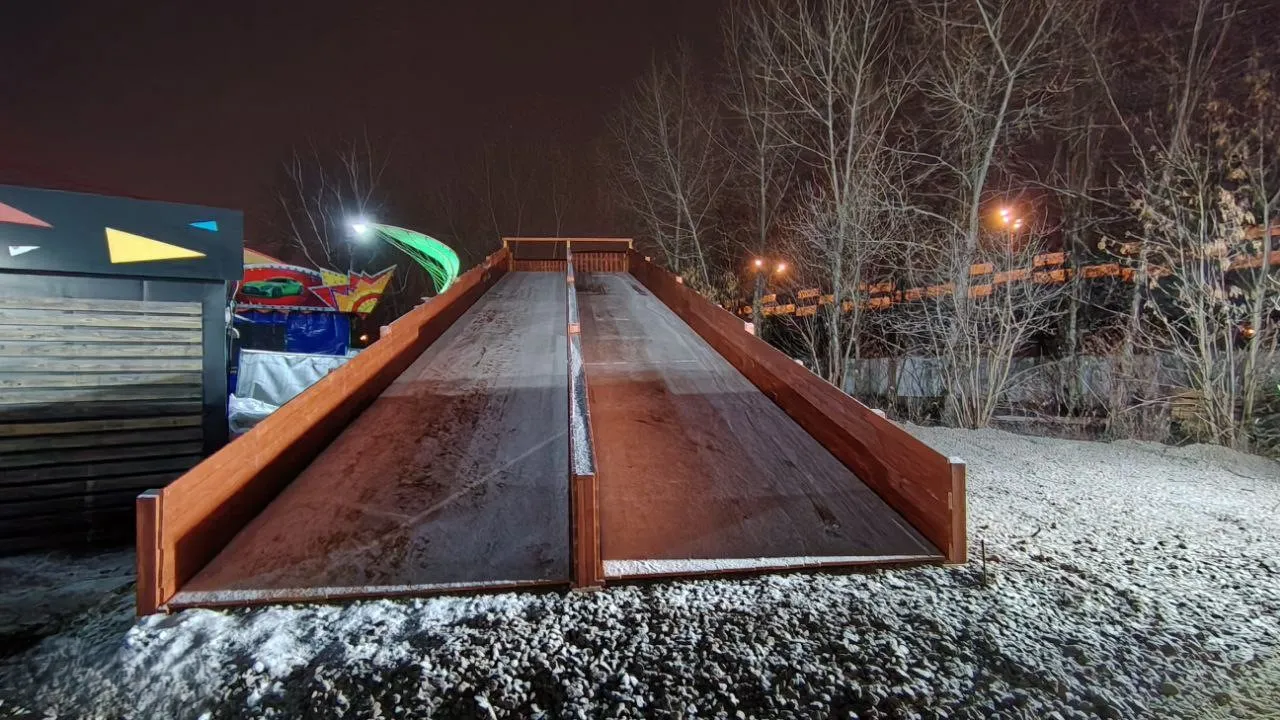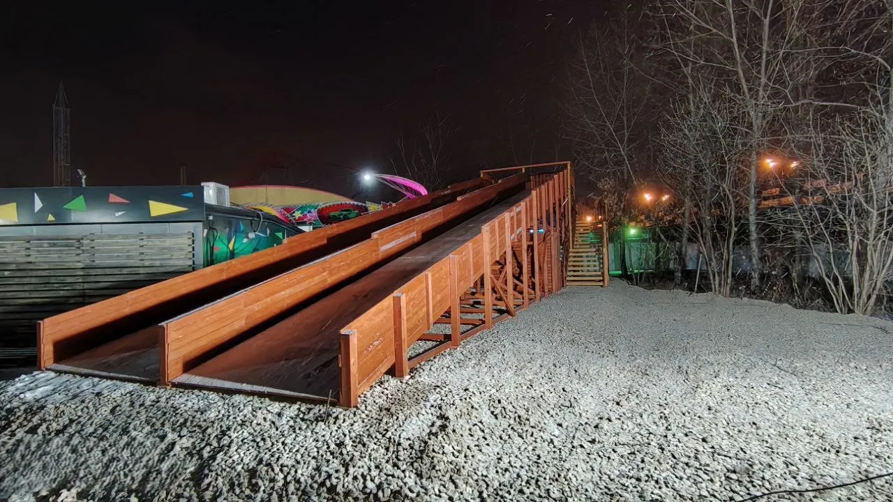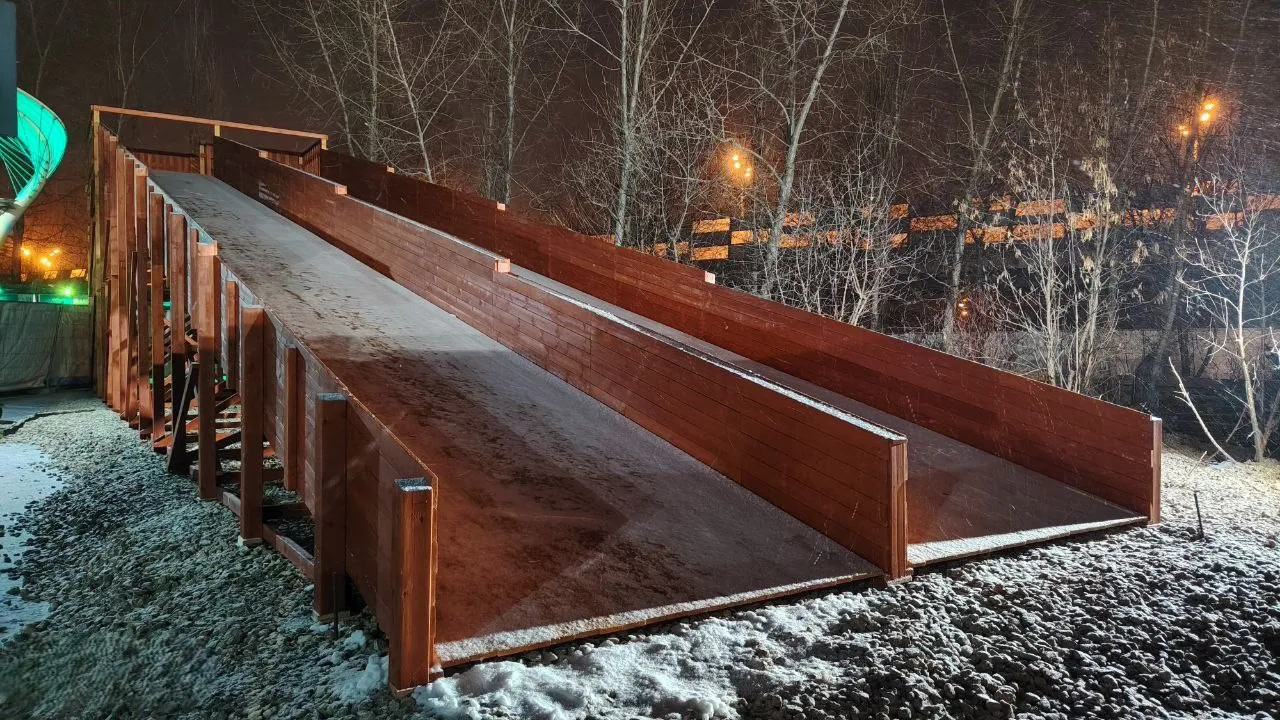 - Два ската длиной 18 м — кататься можно всей компанией.