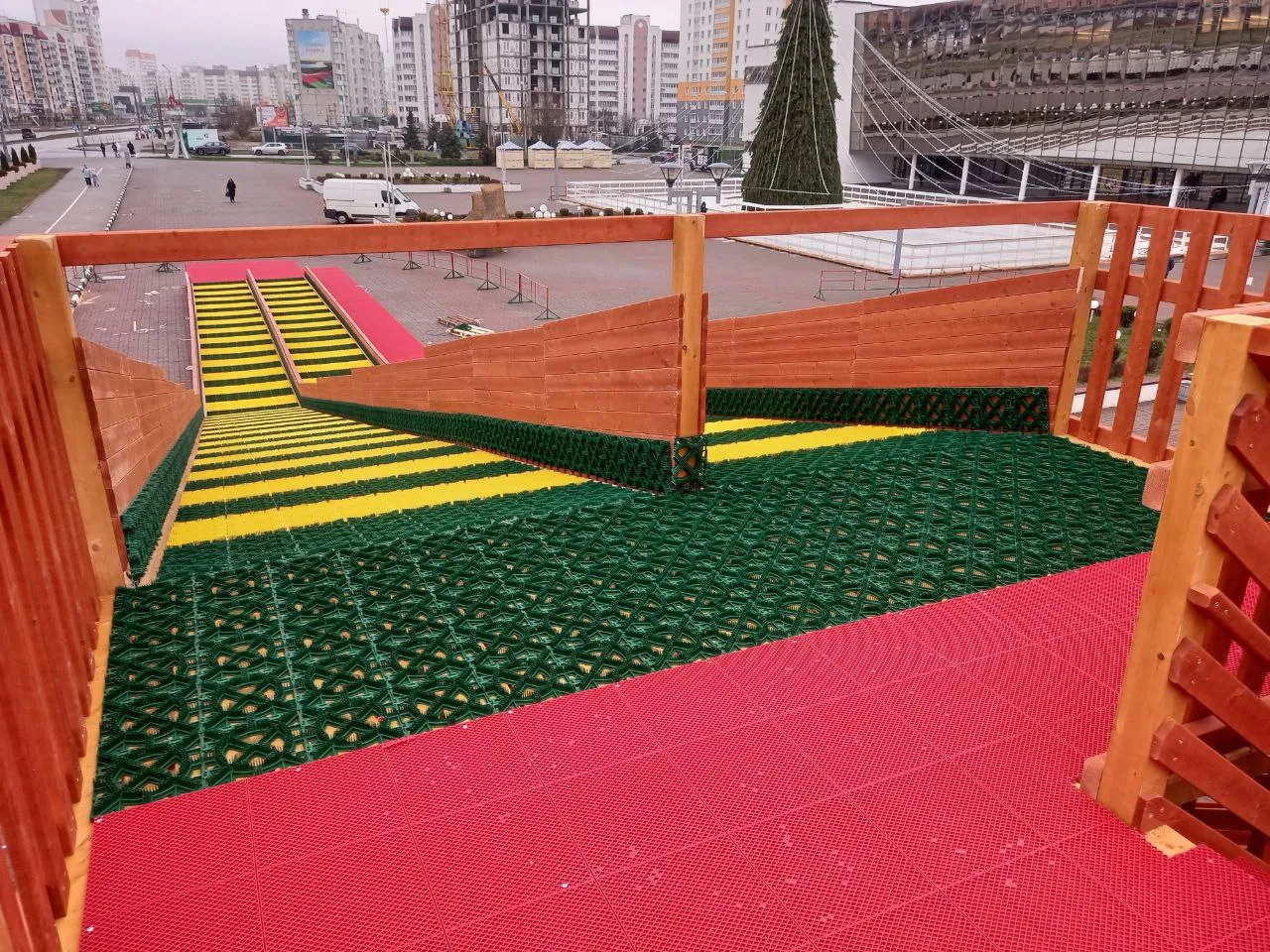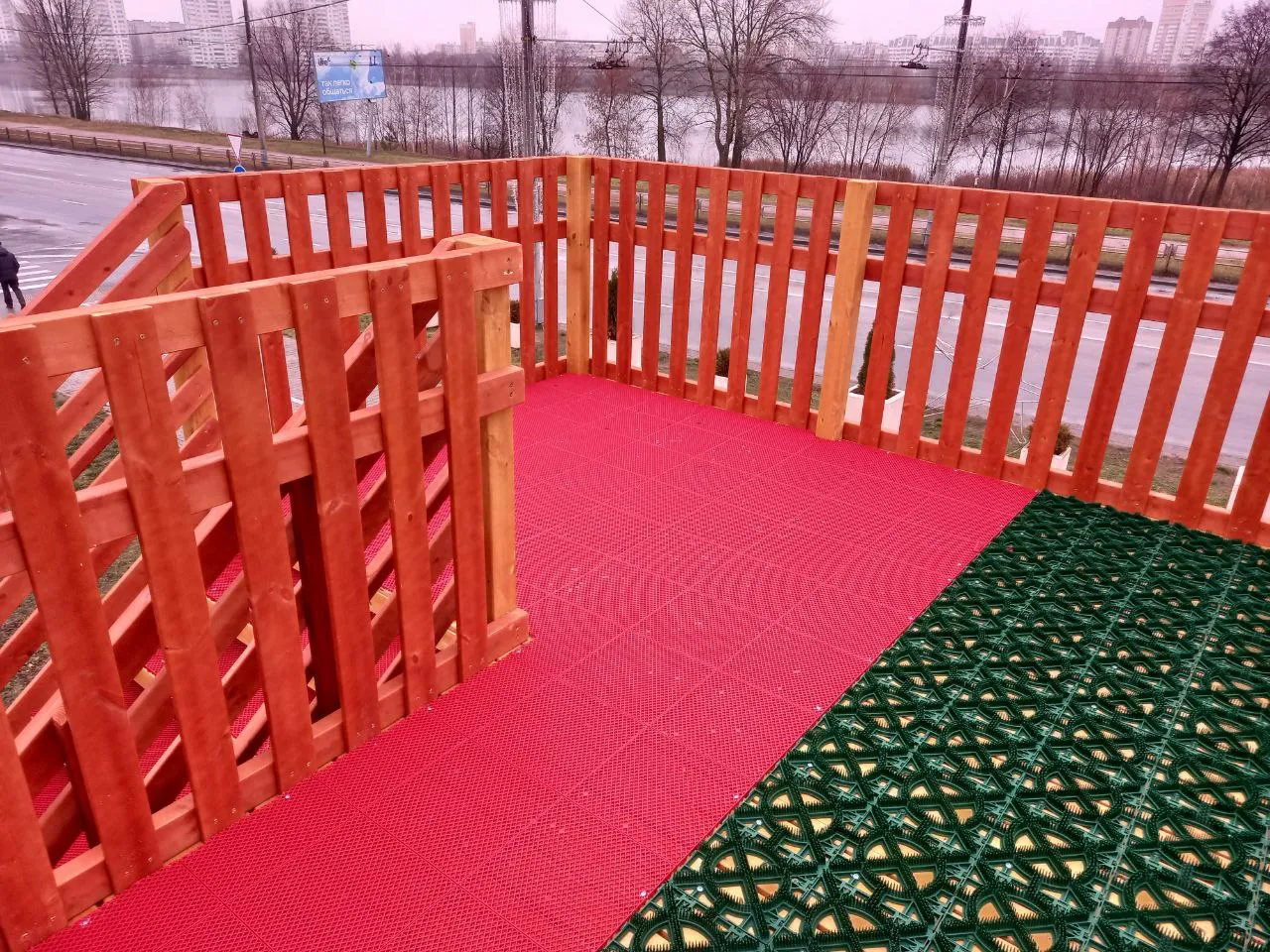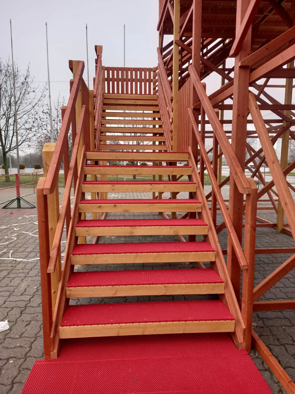- Безопасность: высокие ограждения и антискользящие ступени.