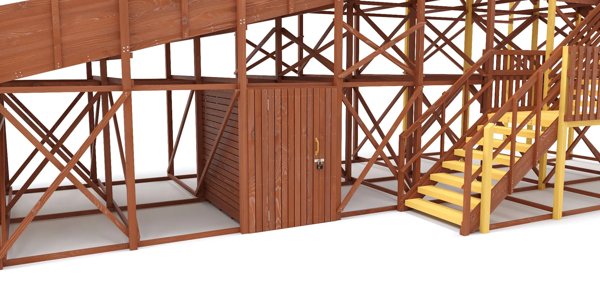 Зимняя горка Савушка Зима 12 в цвете Махагон/Сосна — это два длинных ската по 18 метров и удобное место для хранения инвентаря. Конструкция выполнена из прочного клееного бруса и соответствует ГОСТ, а также имеет Декларацию ТР ЕАЭС 038/2016, что позволяет устанавливать её не только в частных дворах, но и в общественных местах.
