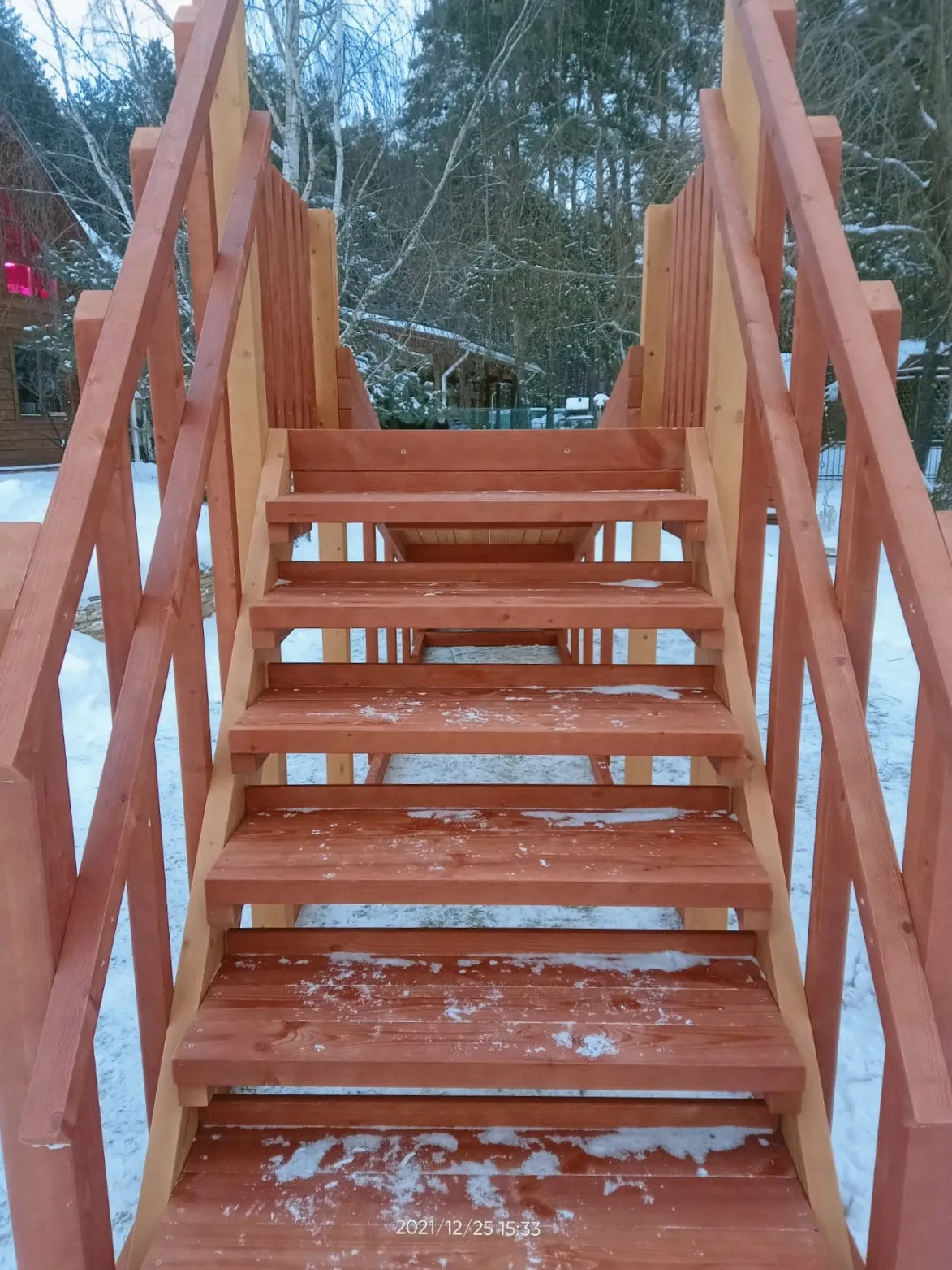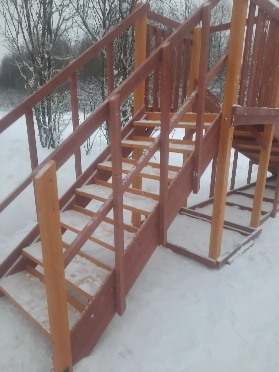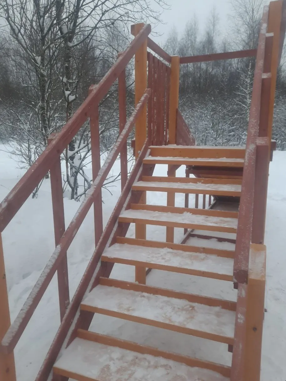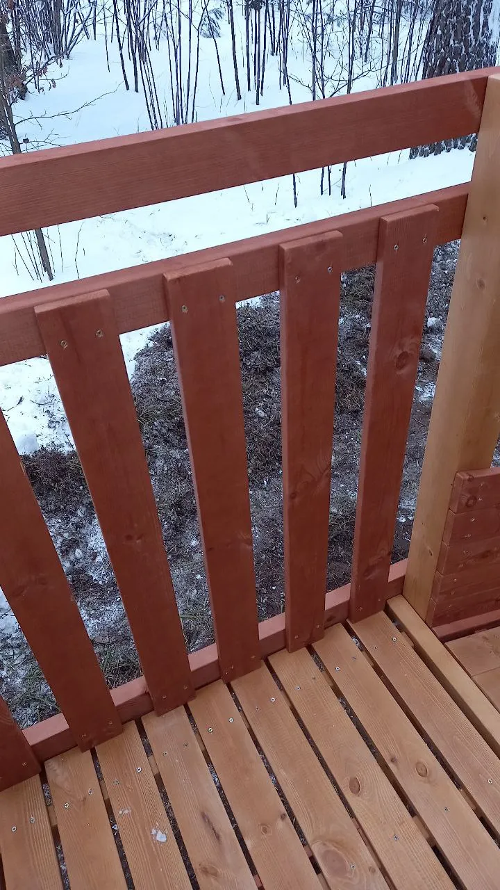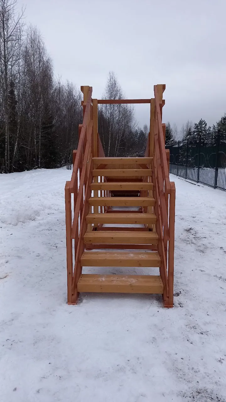 - Лестница — с деревянными перилами