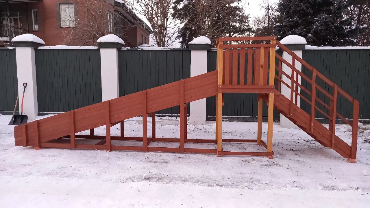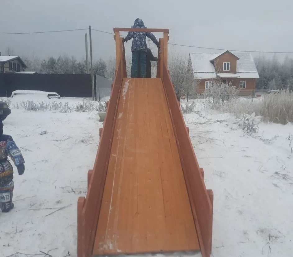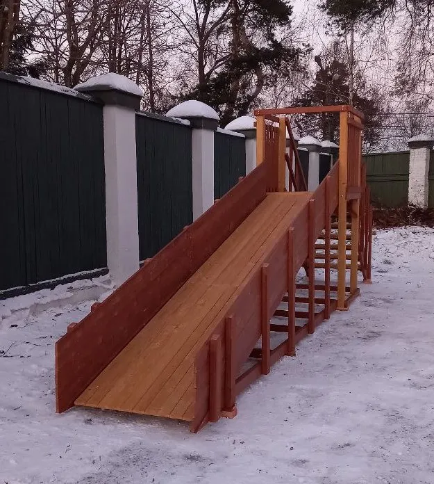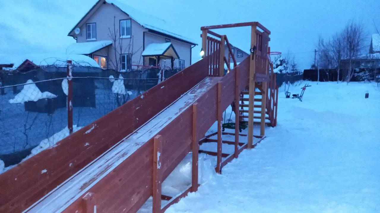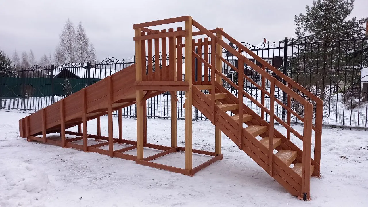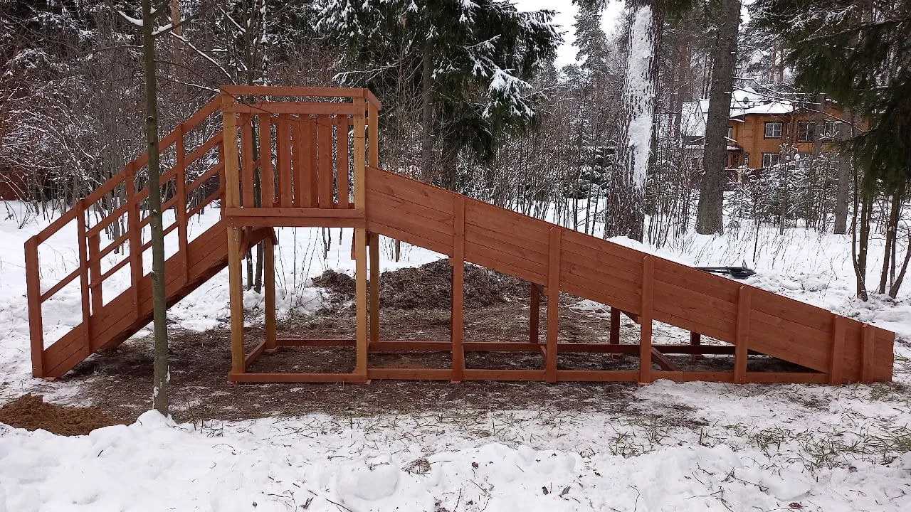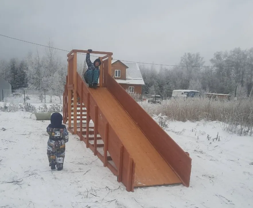Зимняя горка Савушка Зима 2 со скатом 5 метров — это отличный выбор для небольшого дачного участка или двора. Она дарит детям радость активного отдыха и безопасное катание зимой.