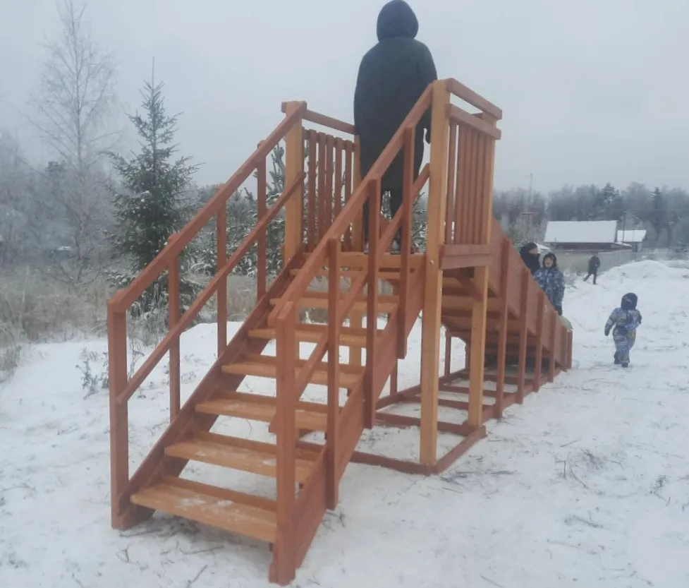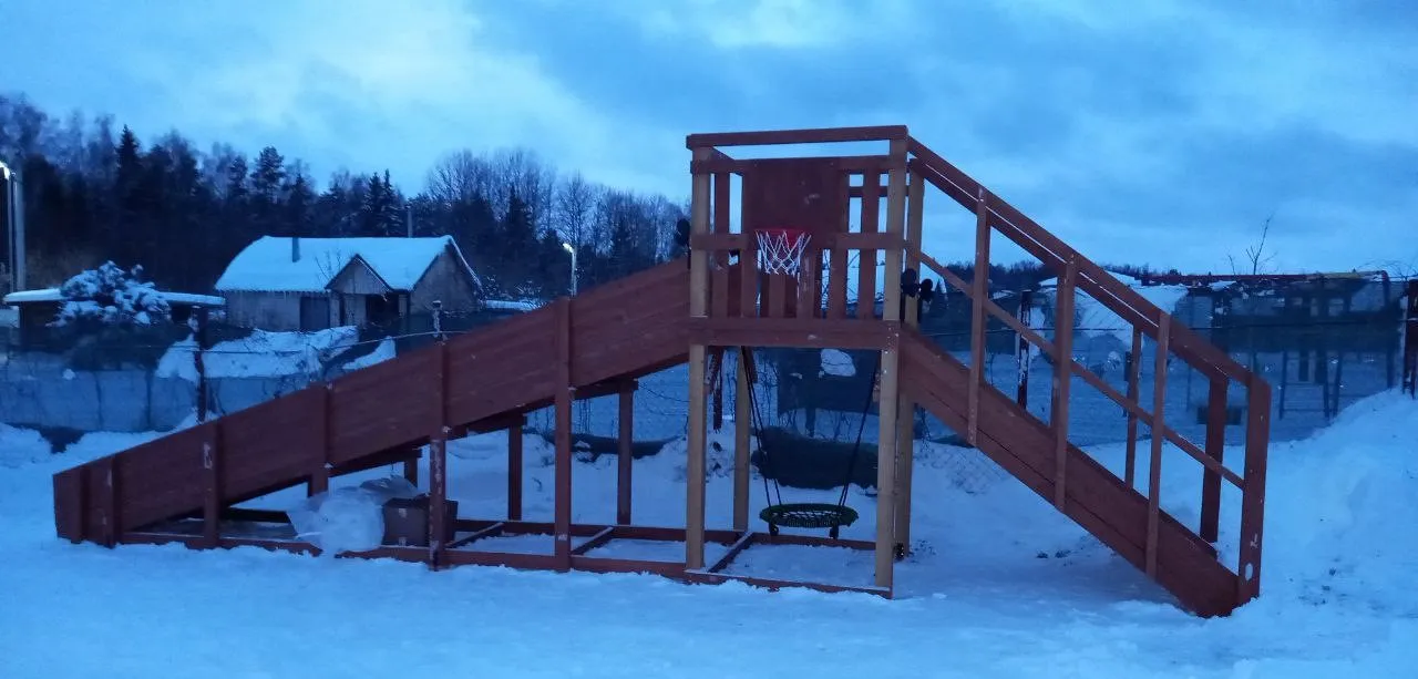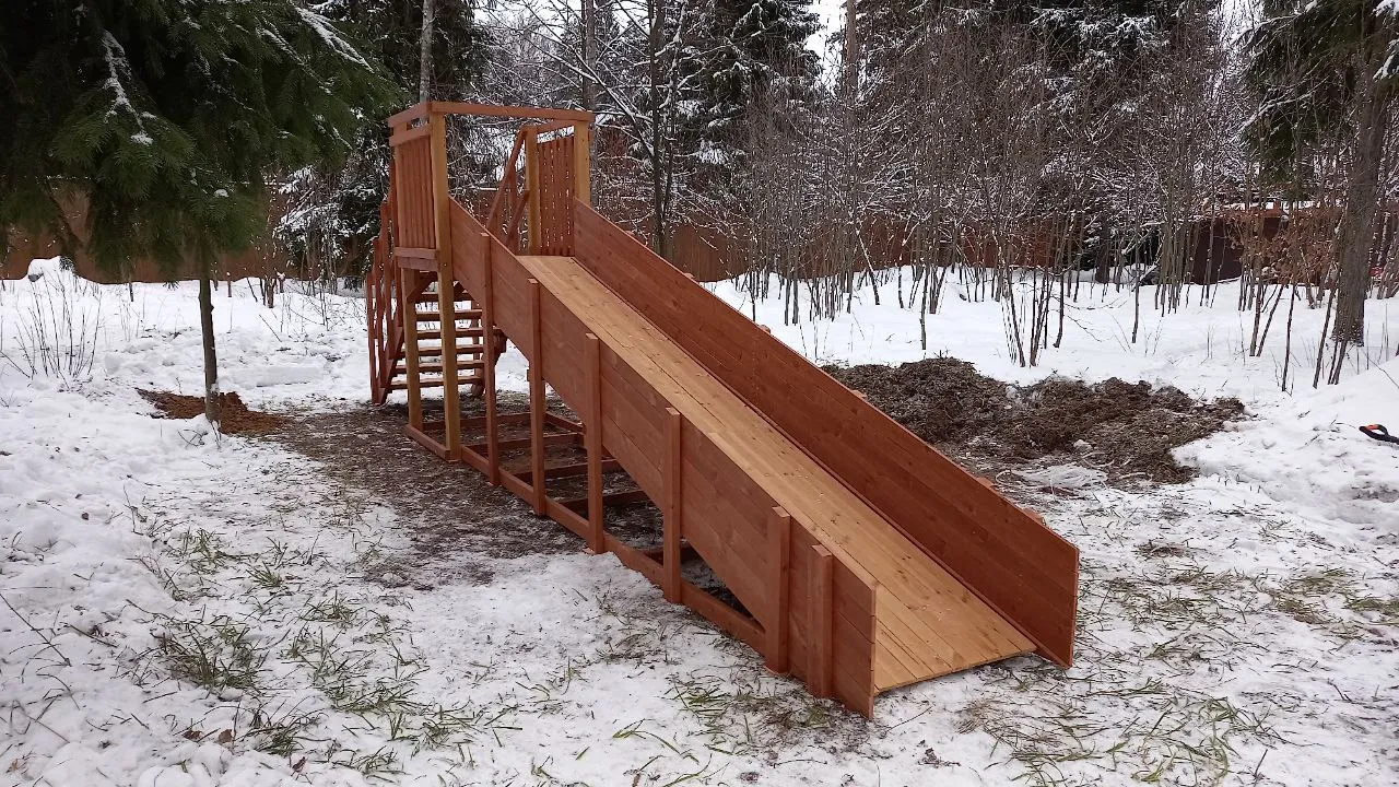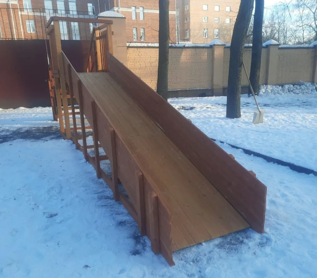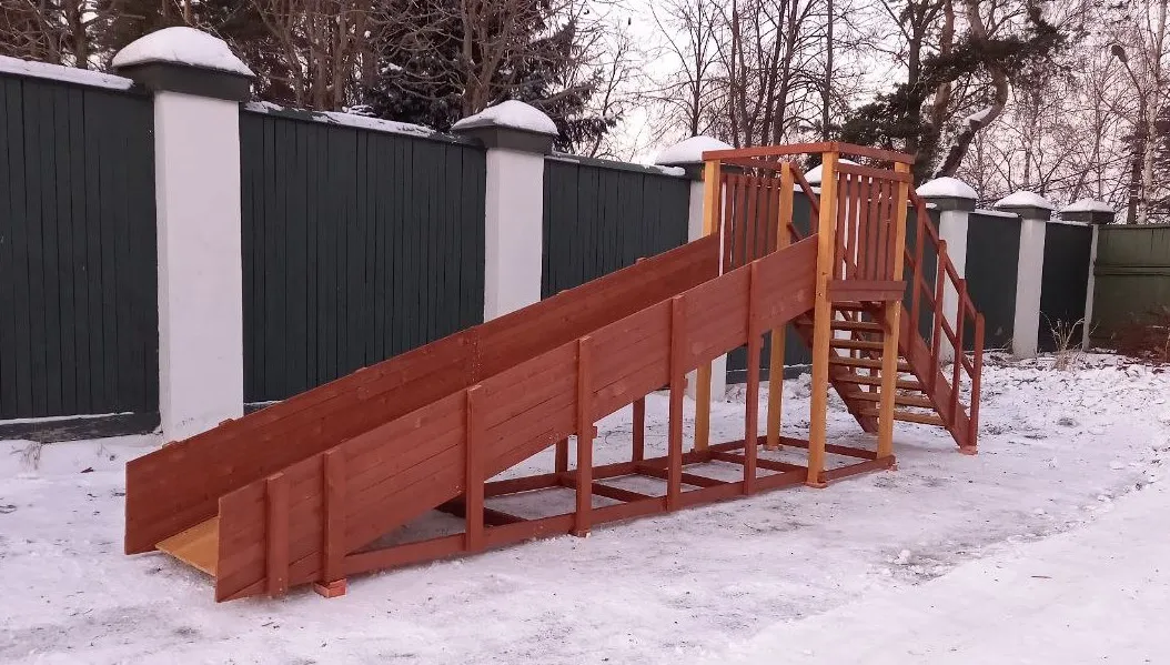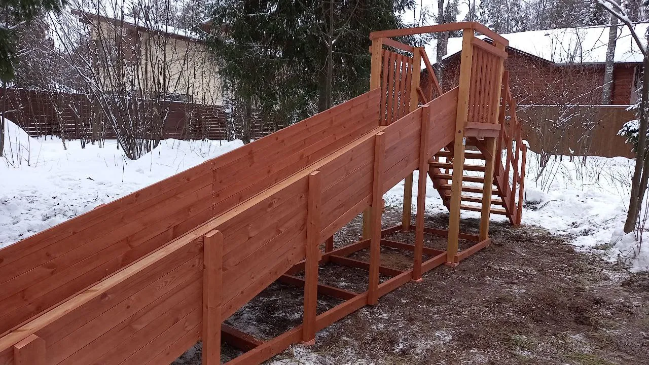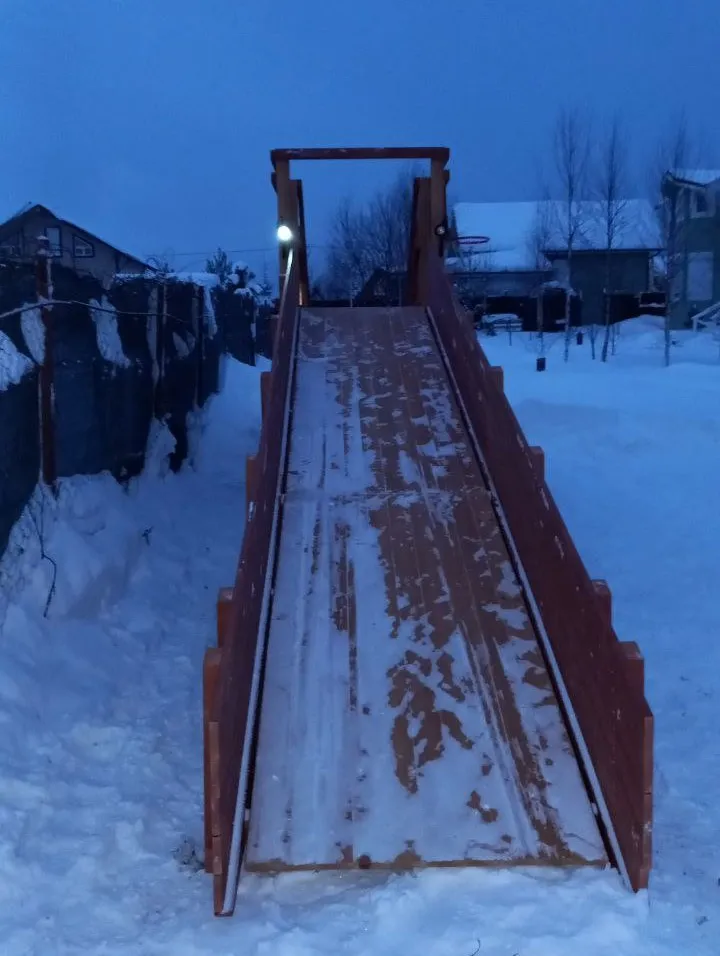 Зимняя горка Савушка Зима 2 со скатом 5 метров — это отличный выбор для небольшого дачного участка или двора. Она дарит детям радость активного отдыха и безопасное катание зимой.