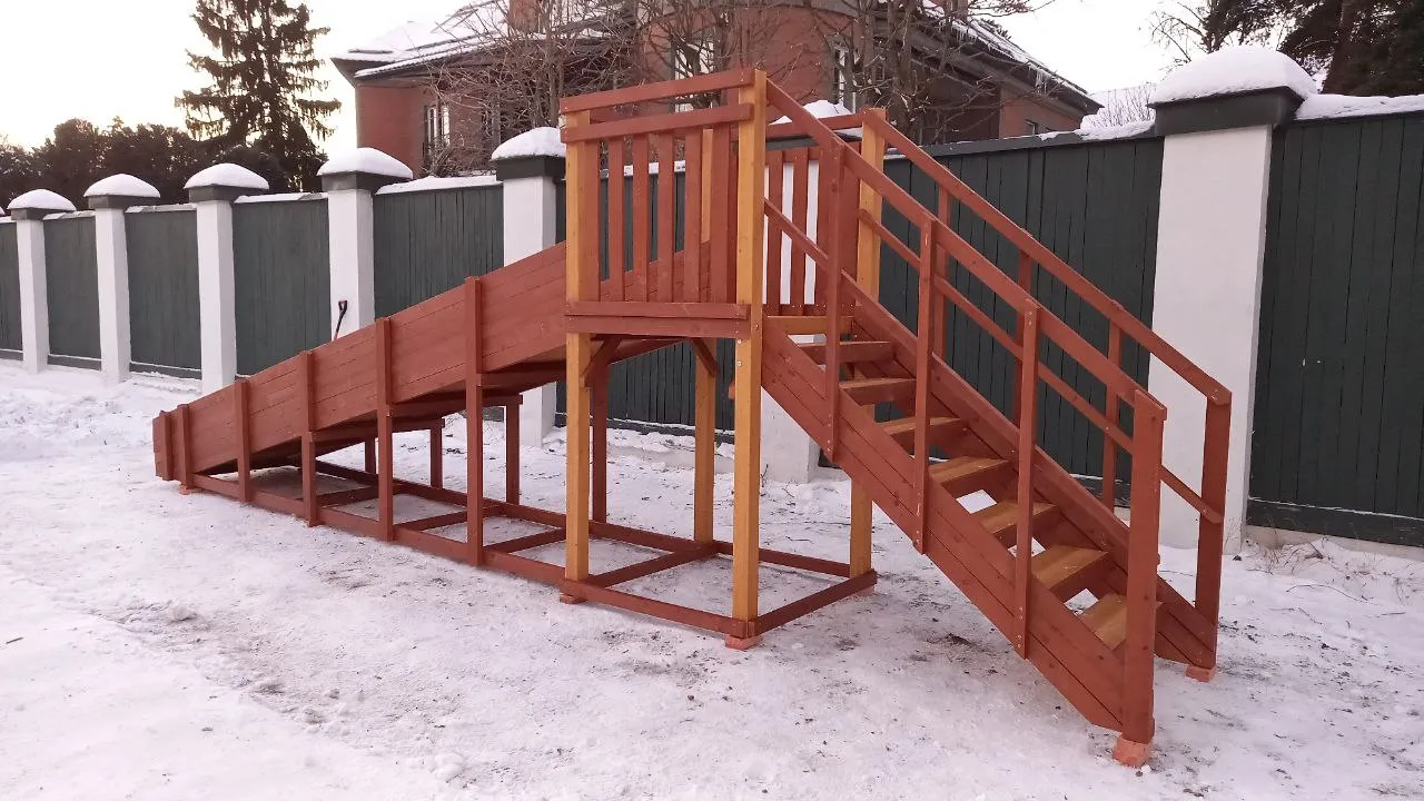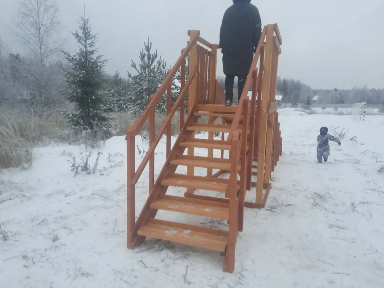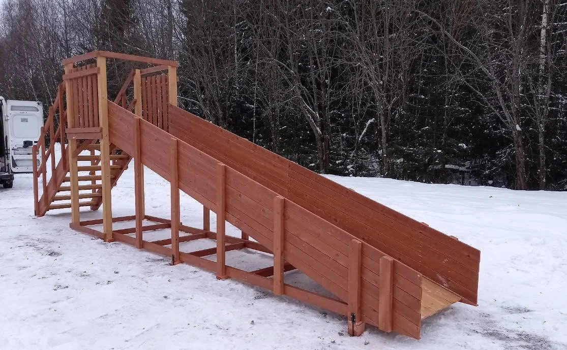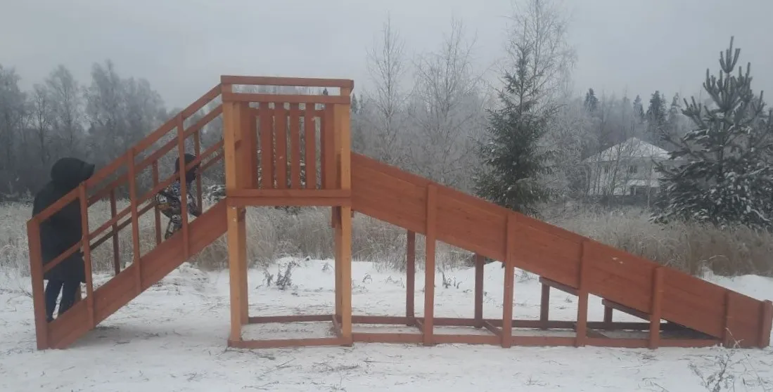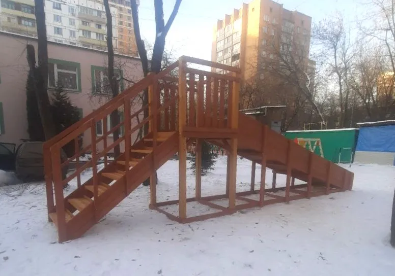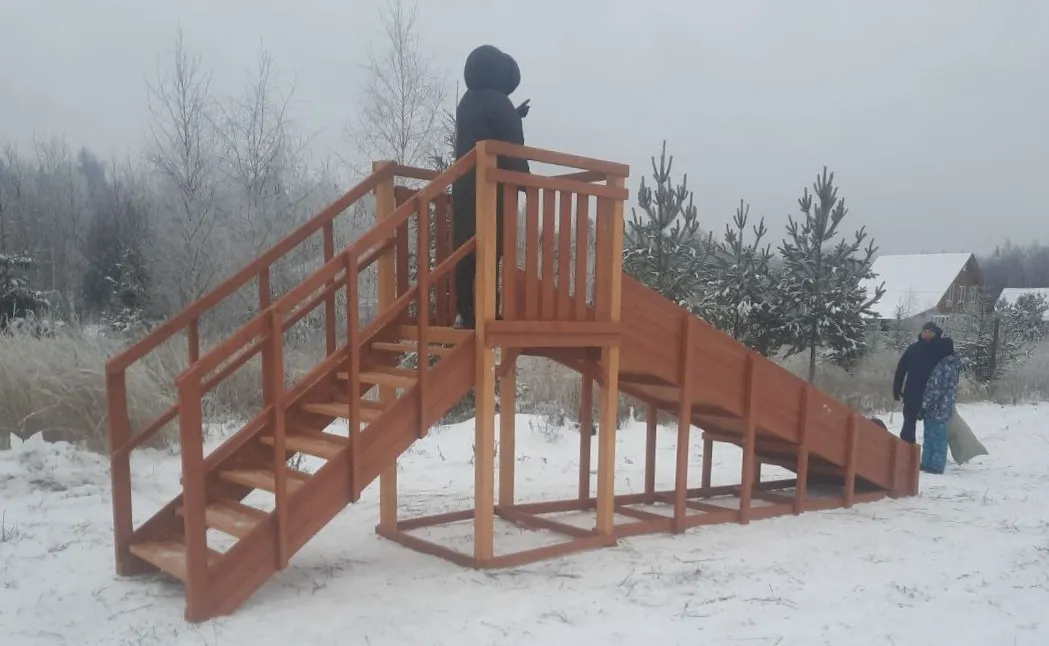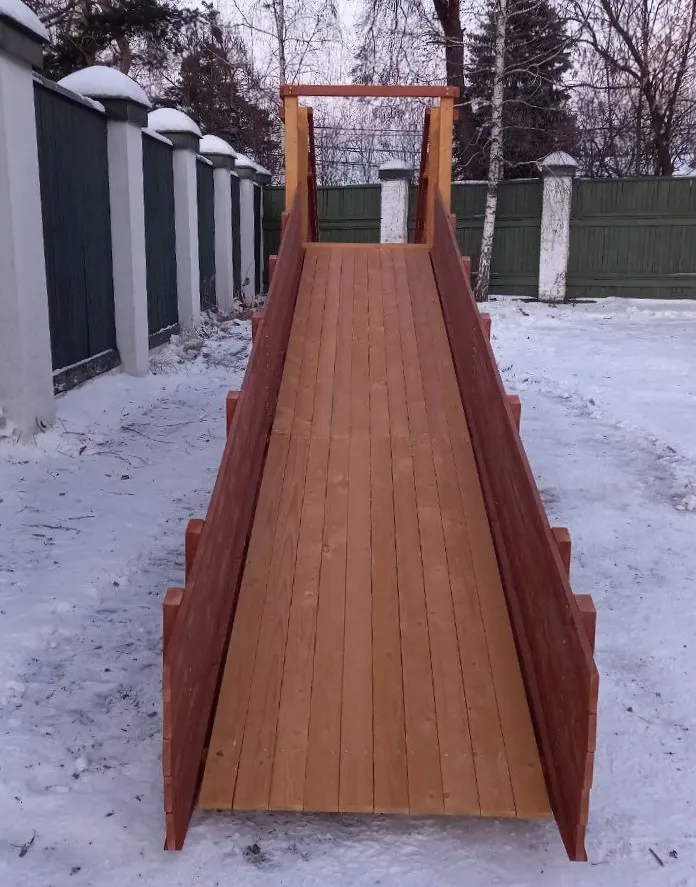 Зимняя горка Савушка Зима 2 со скатом 5 метров — это отличный выбор для небольшого дачного участка или двора. Она дарит детям радость активного отдыха и безопасное катание зимой.