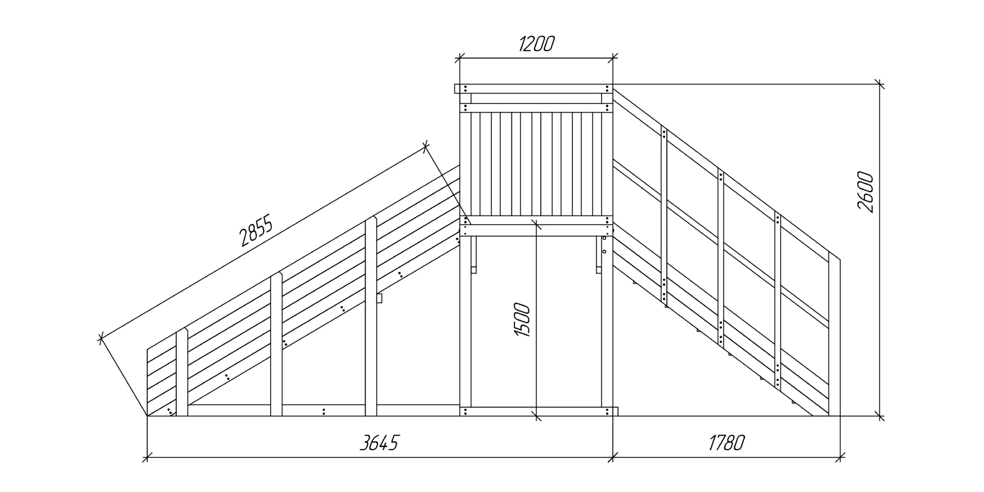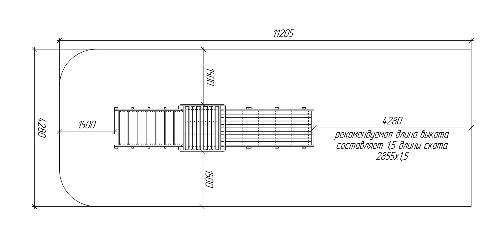 - Длина ската — 2 855 мм (есть такая же горка со скатом 5м)