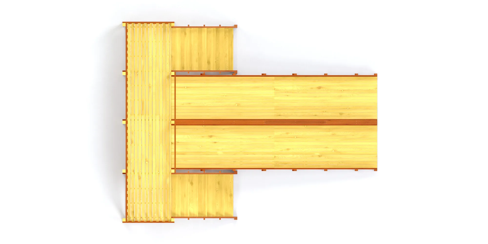 Надежность конструкции достигается за счет использования только качественных материалов. Силовые детали выполнены из клееного бруса 90х90мм. Мы используем брус камерной сушки, он менее склонен к растрескиванию, чем брус естественной сушки.