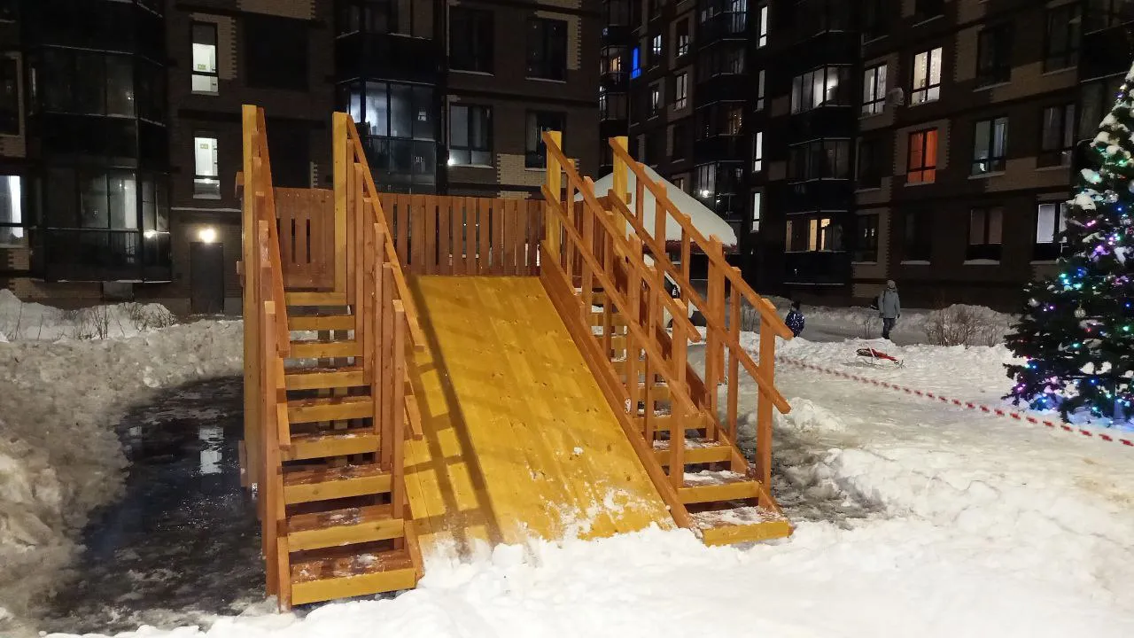 Горка выдерживает активную игру нескольких детей одновременно и станет любимым зимним развлечением.