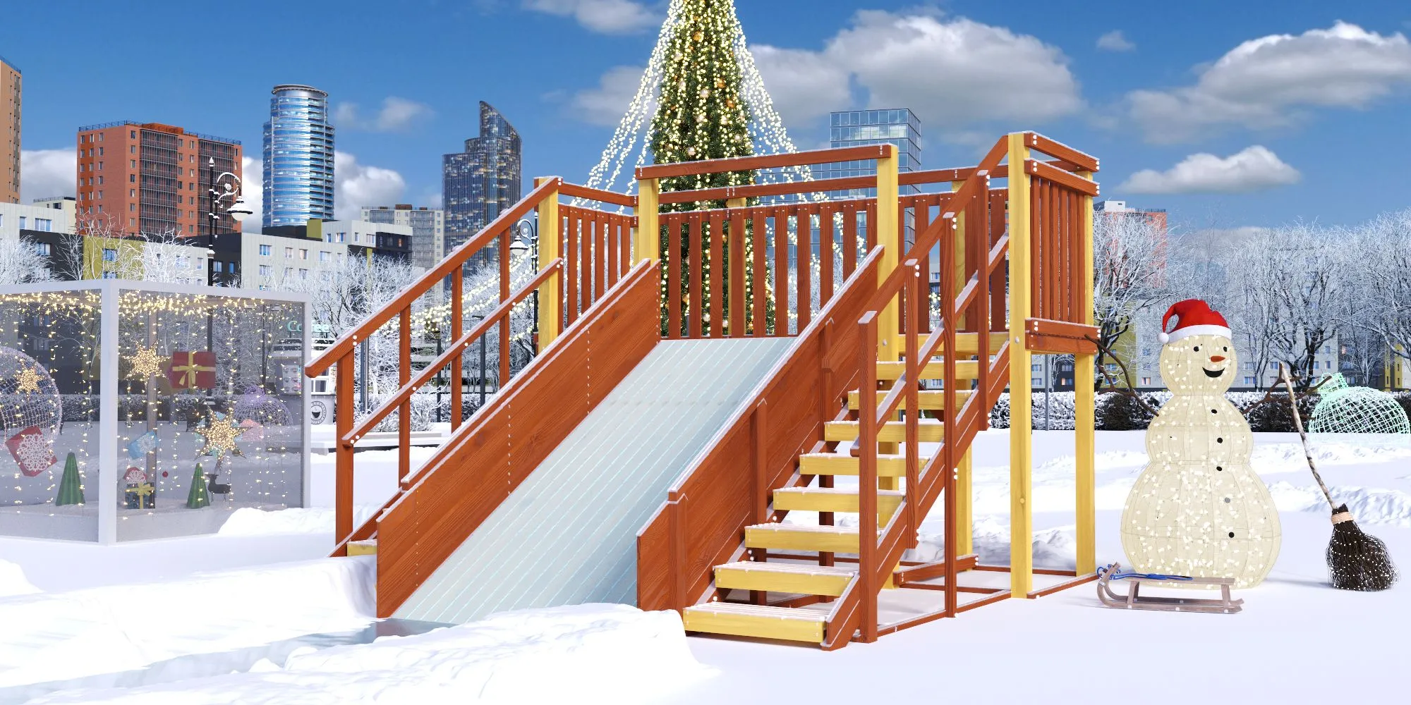 Зимняя горка Савушка Зима 4 — отличный вариант для частного дома или дачи. Она компактная, удобная и идеально подойдёт для детей от 3 до 12 лет.