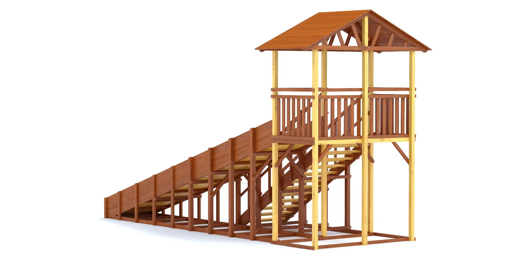 Удобная пологая лестница, широкая платформа и высокие ограждения делают горку безопасной для детей. Кататься можно как поодиночке, так и с друзьями.