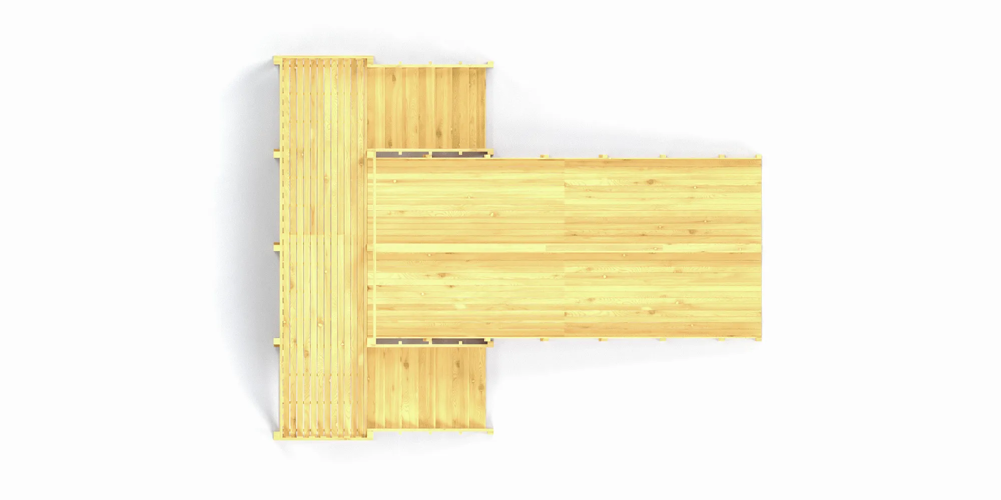 Надежность конструкции достигается за счет использования только качественных материалов. Силовые детали выполнены из клееного бруса 90х90мм. Мы используем брус камерной сушки, он менее склонен к растрескиванию, чем брус естественной сушки.