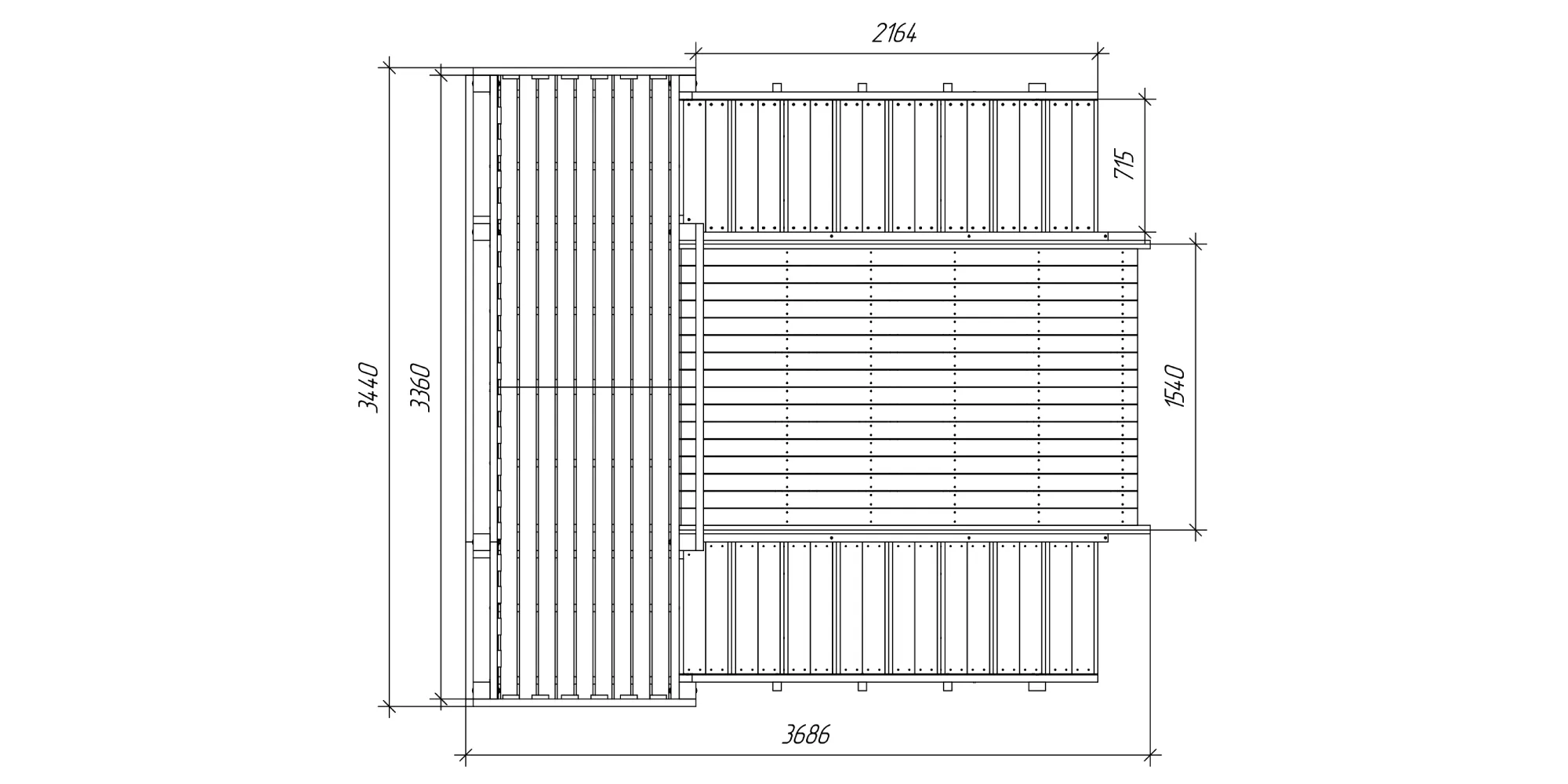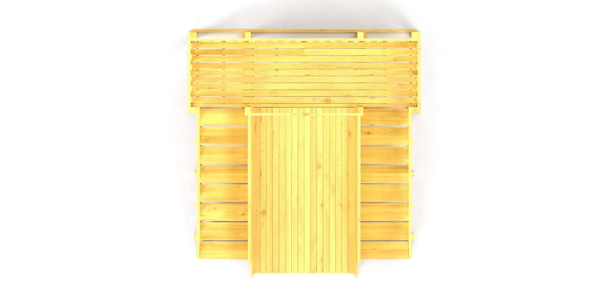 Каркас выполнен из прочного клеёного бруса, который выдерживает морозы и влагу.