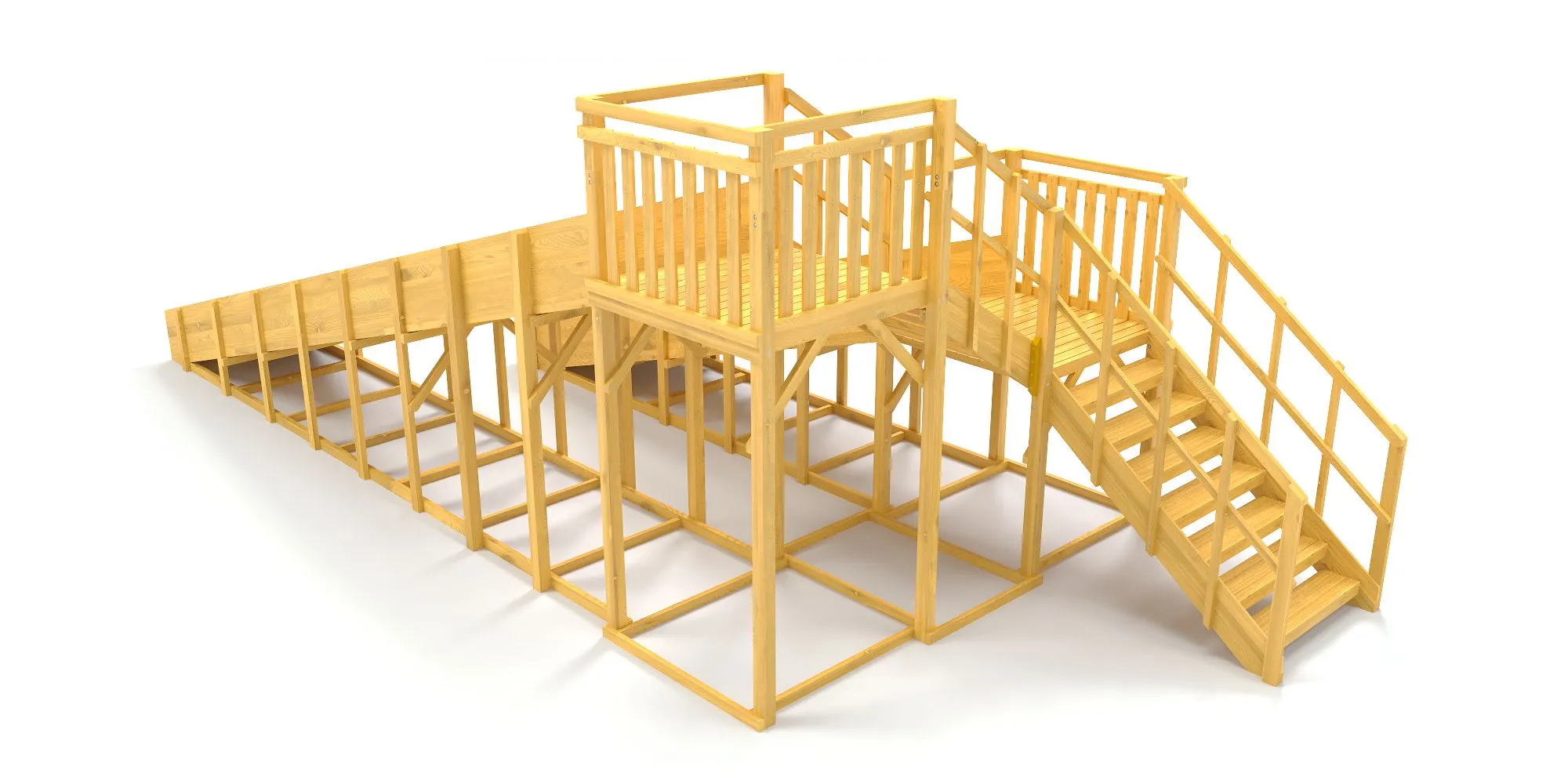 Горка изготовлена из прочного клеёного бруса камерной сушки, соответствует ГОСТ и имеет декларацию ТР ЕАЭС 038/2016, что позволяет устанавливать её не только в частных дворах, но и в общественных местах. Продуманная конструкция обеспечивает долговечность и безопасность: скруглённые углы, антискользящие ступени и высокие перила защищают детей от травм.
