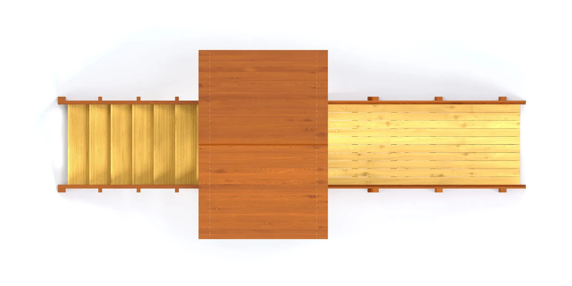 Надежность конструкции достигается за счет использования только качественных материалов. Силовые детали выполнены из клееного бруса 90х90мм. Мы используем брус камерной сушки, он менее склонен к растрескиванию, чем брус естественной сушки.
