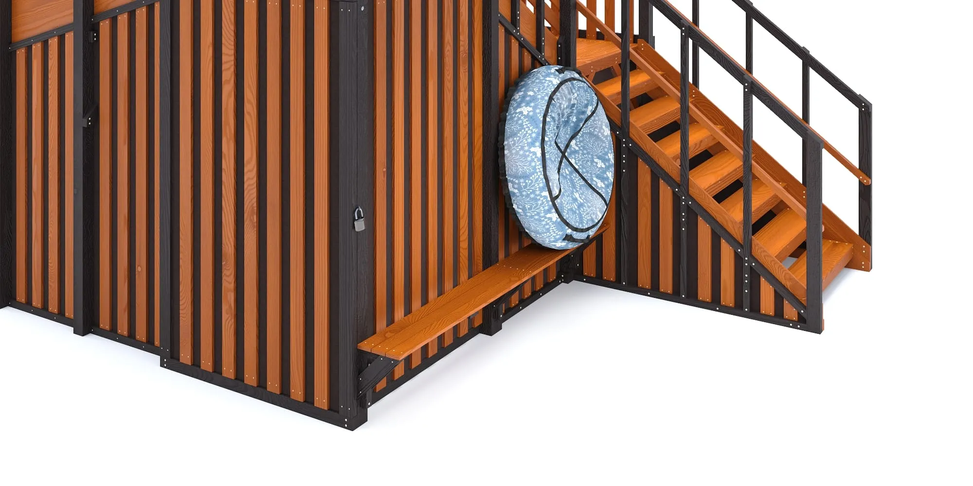 Под платформой расположен закрытый отсек для хранения тюбингов — функциональное решение, защищающее инвентарь от снега. Отсек закрывается замком, который входит в комплект.