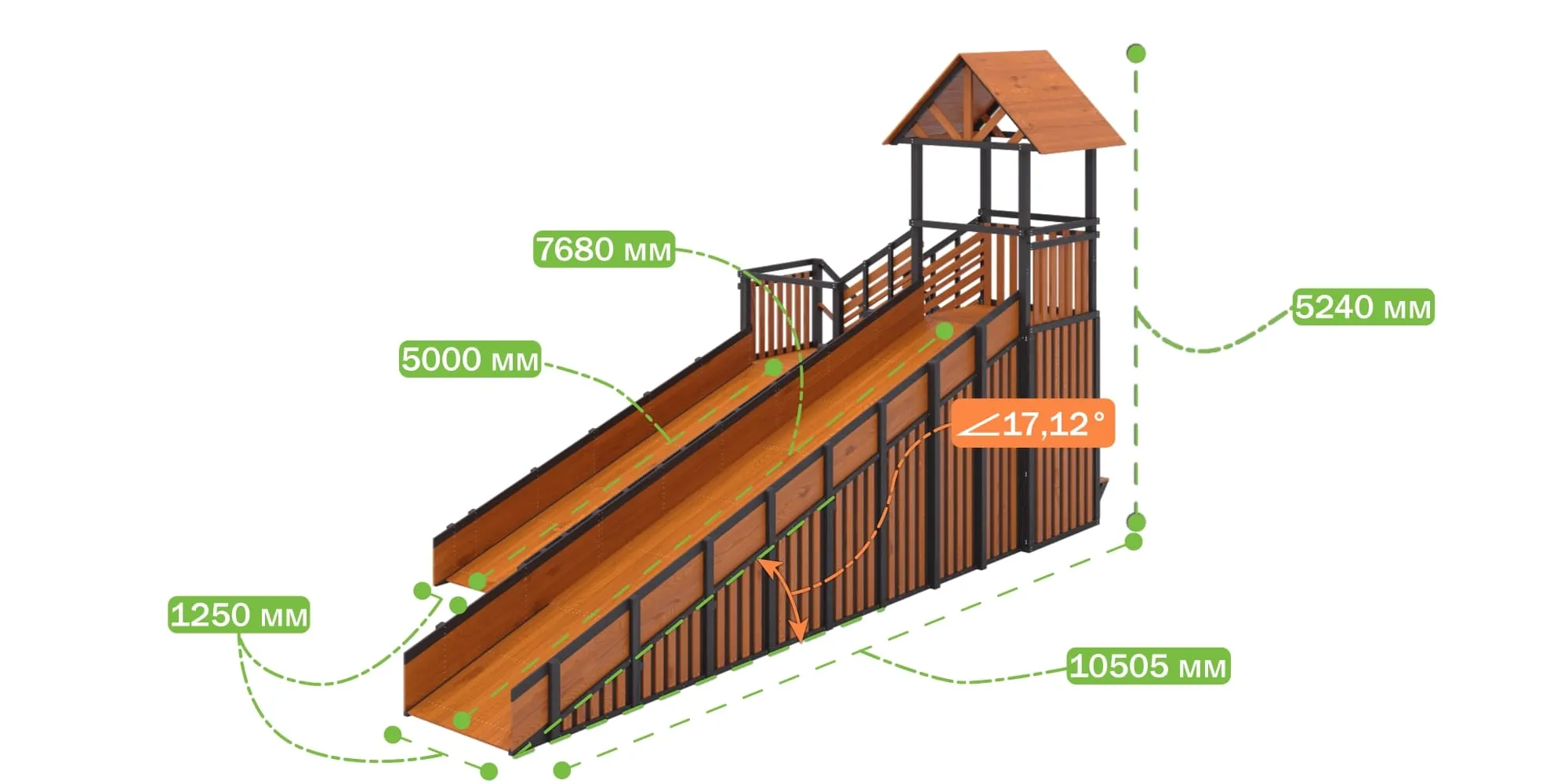 Длина ската № 1 – 5 000 мм, №2 – 7 680 мм