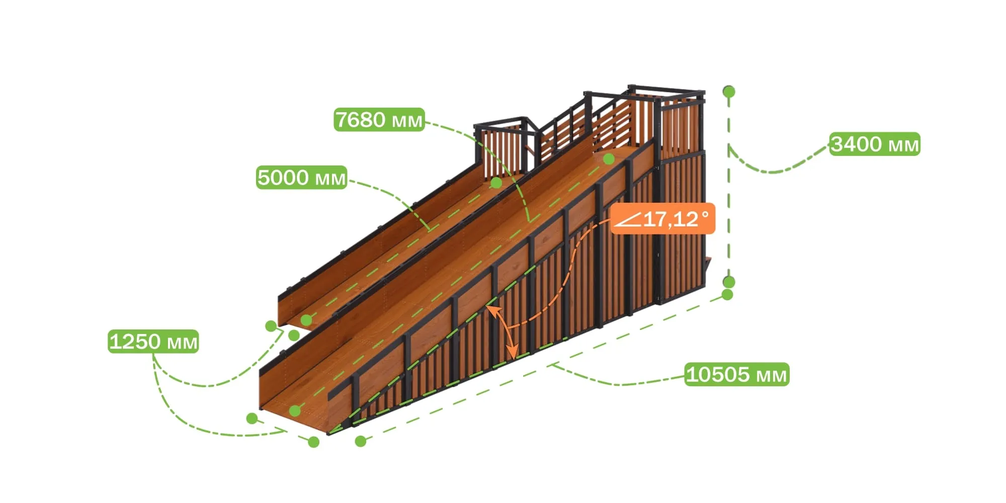 Длина ската № 1 – 5 000 мм, №2 – 7 680 мм