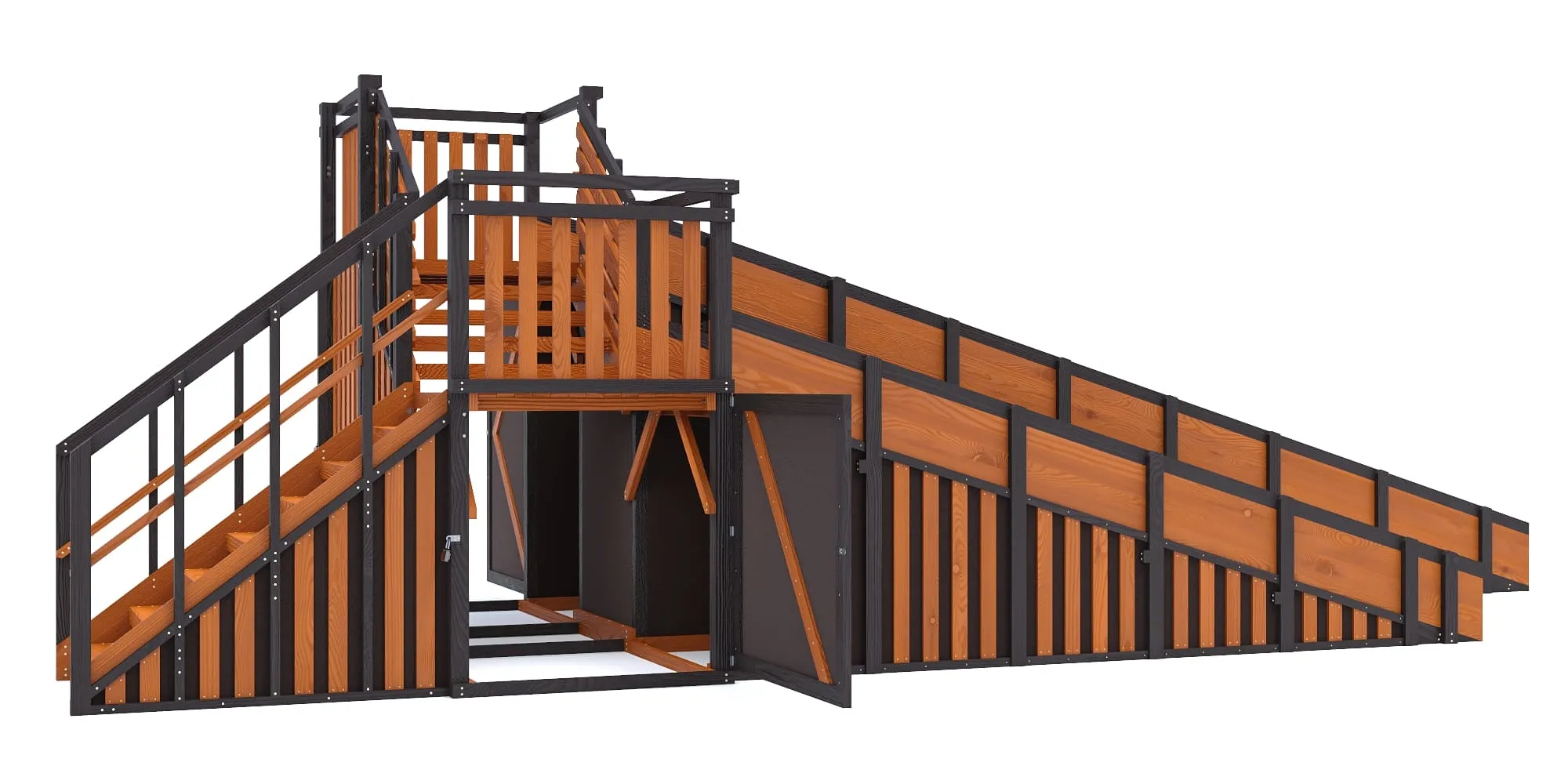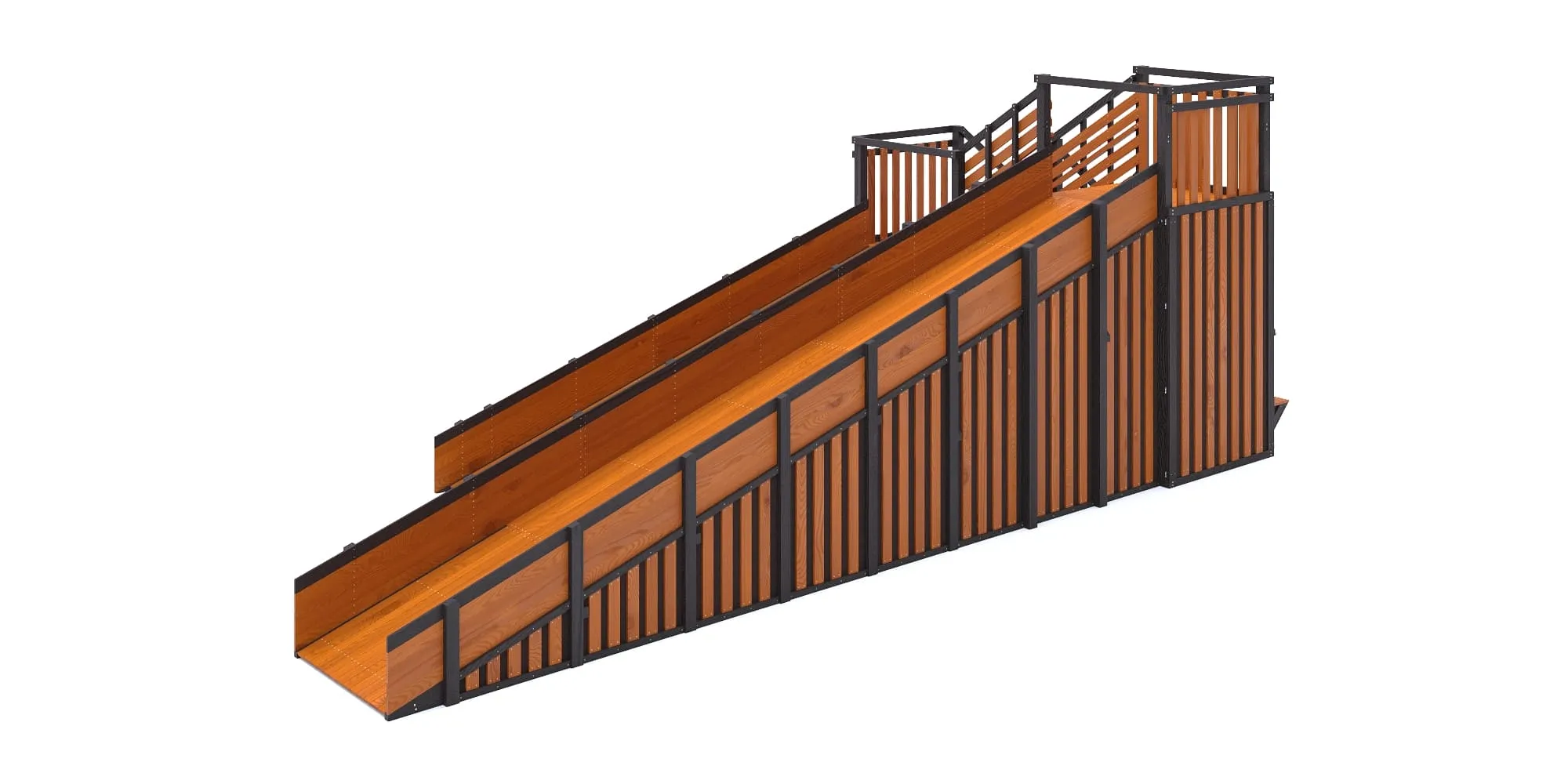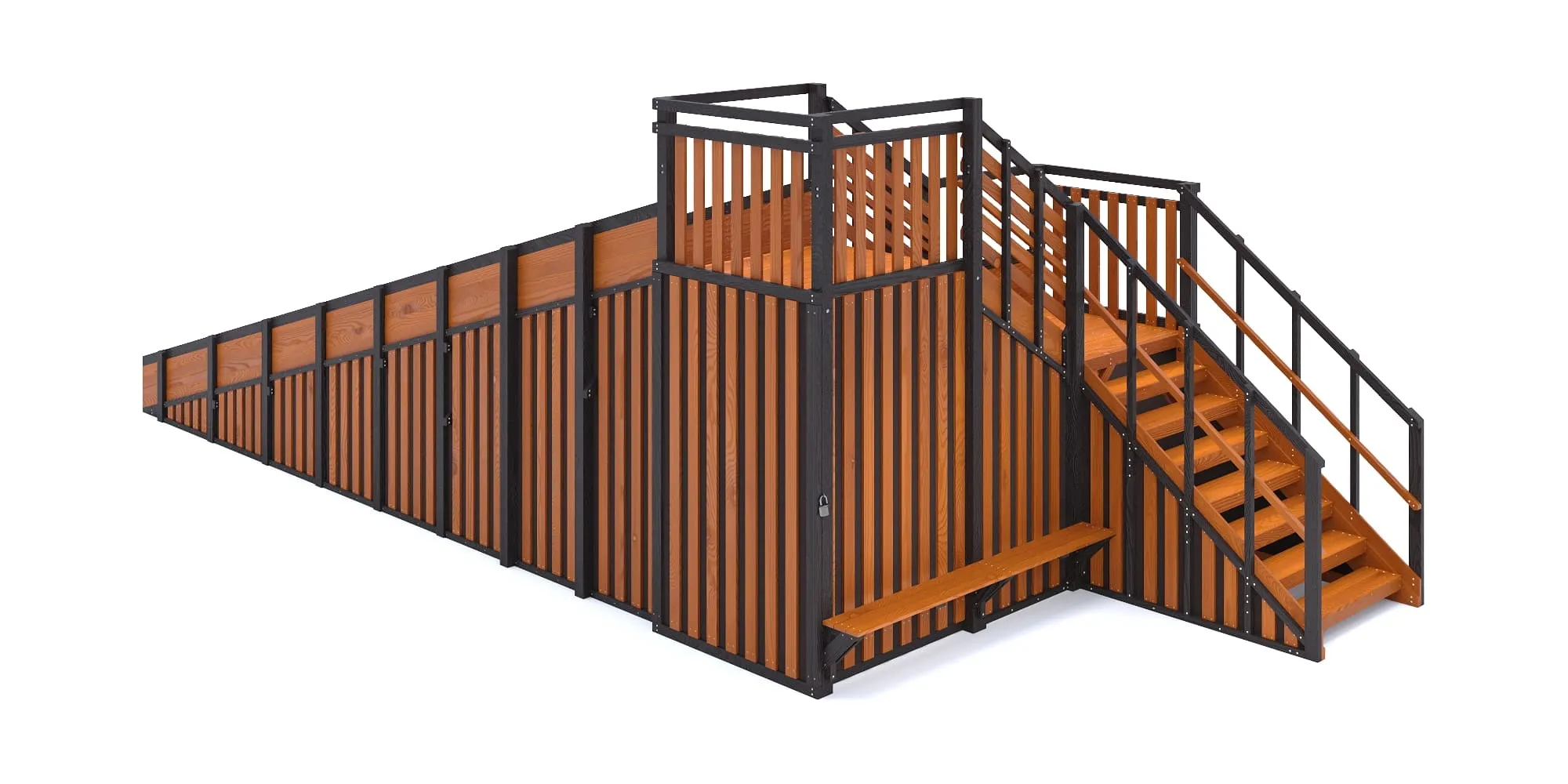 Закрытые фасады и встроенное хранилище тюбингов формируют премиальный внешний вид, защищают конструкцию от снега и позволяют хранить инвентарь сухим и аккуратным под замком. В старших моделях с закрытыми фасадами мы добавили удобную лавочку для отдыха.