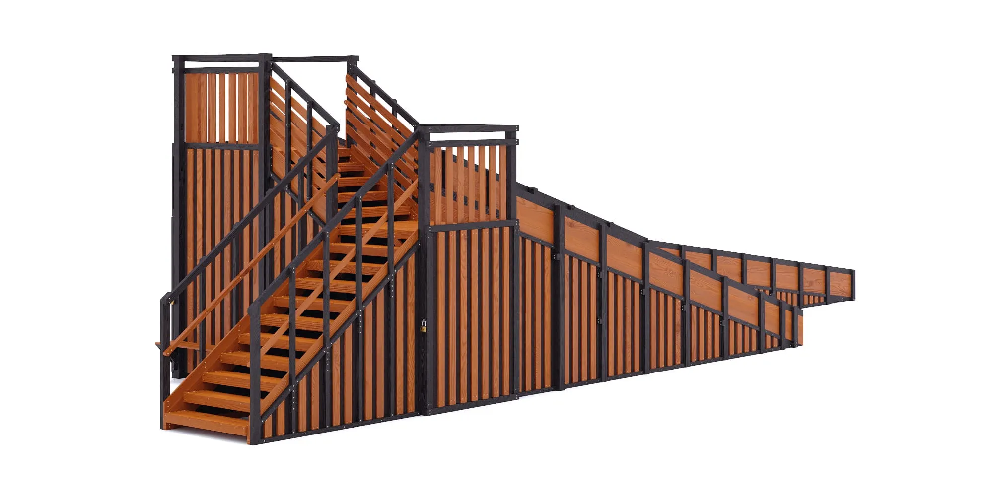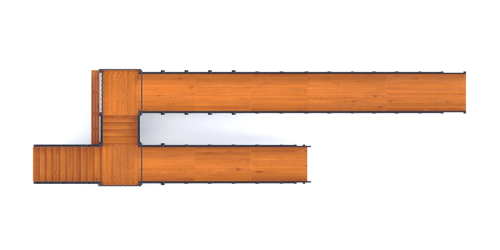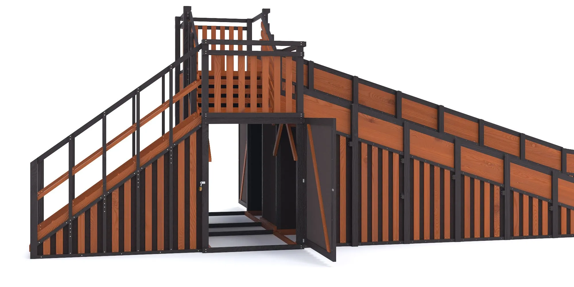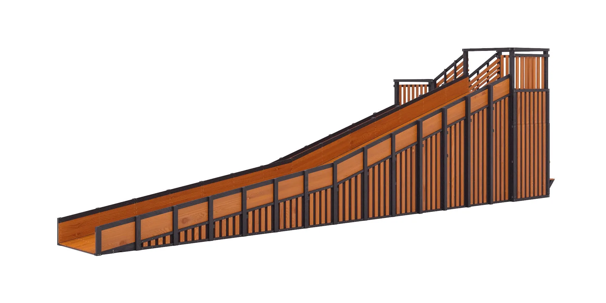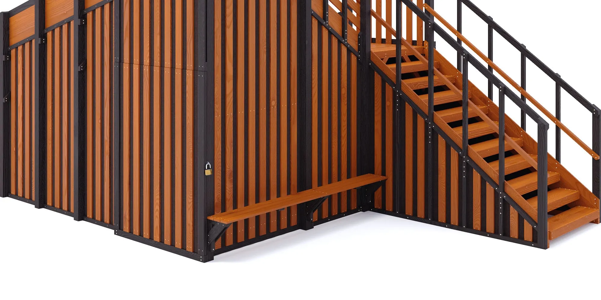 Закрытые фасады и встроенное хранилище тюбингов формируют премиальный внешний вид, защищают конструкцию от снега и позволяют хранить инвентарь сухим и аккуратным под замком. В старших моделях с закрытыми фасадами мы добавили удобную лавочку для отдыха.