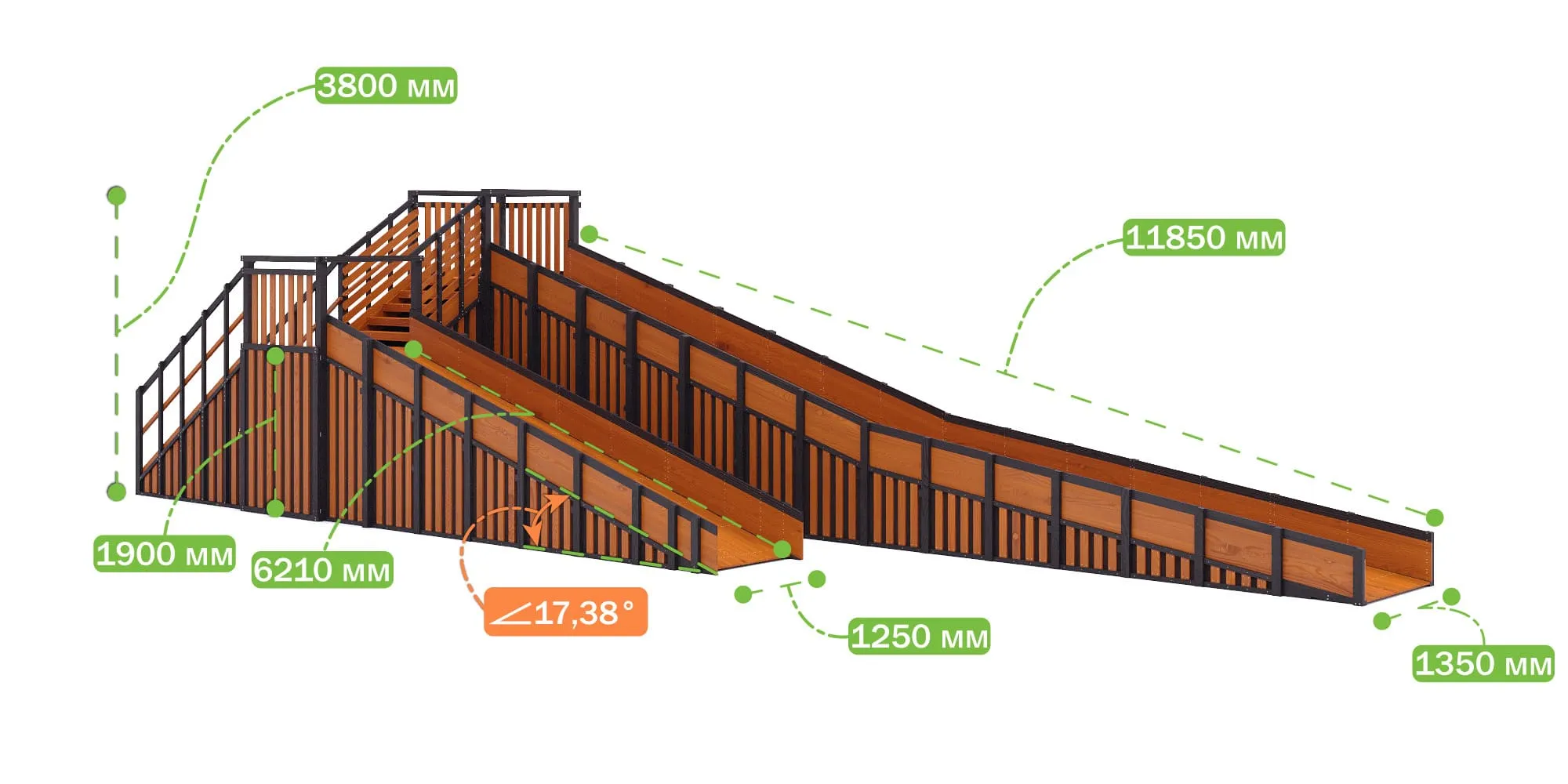 Длина ската № 1 – 6 210 мм, №2 – 11 850 мм