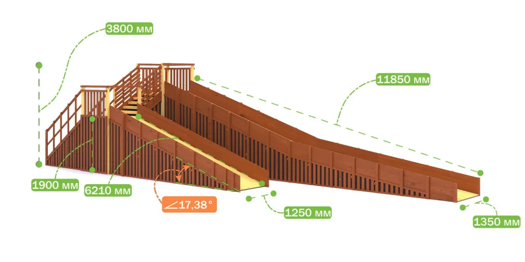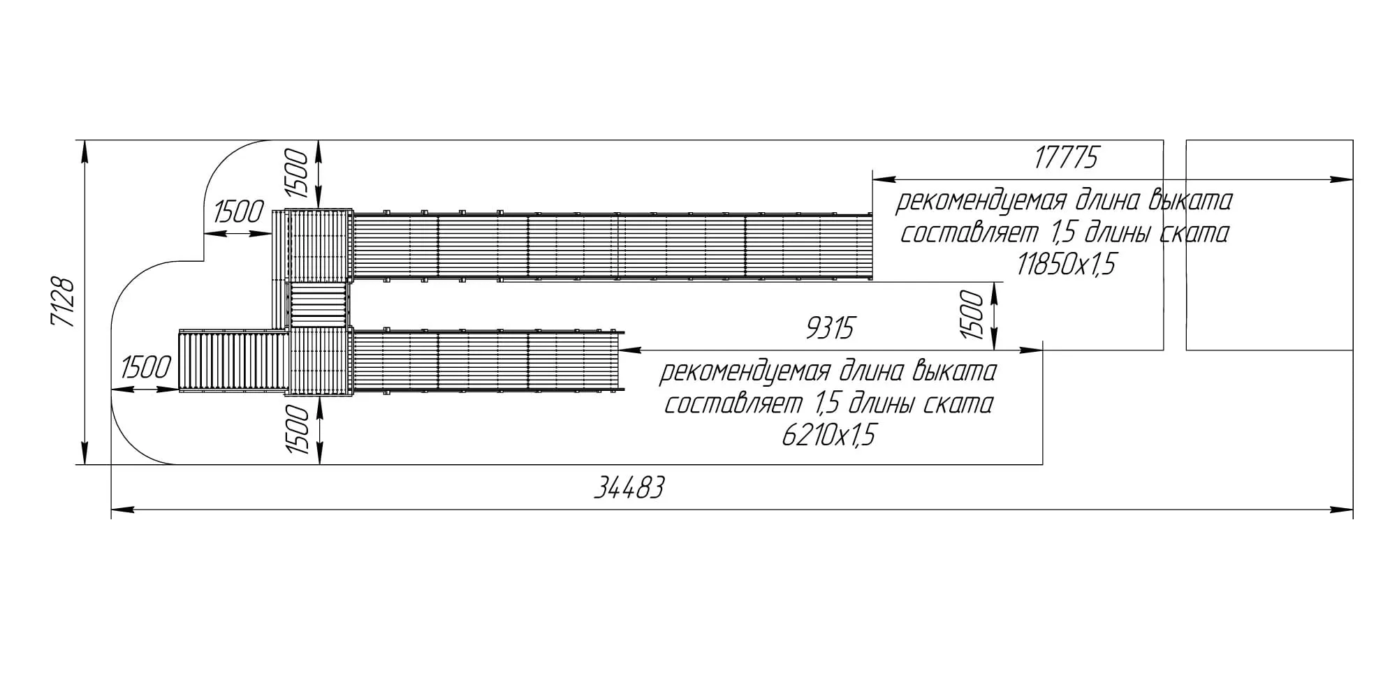 Длина ската № 1 – 6 210 мм, №2 – 11 850 мм
