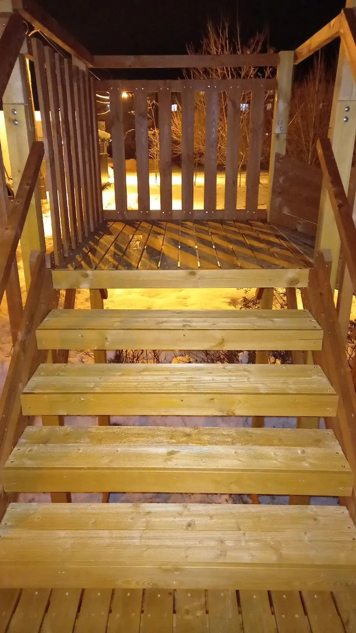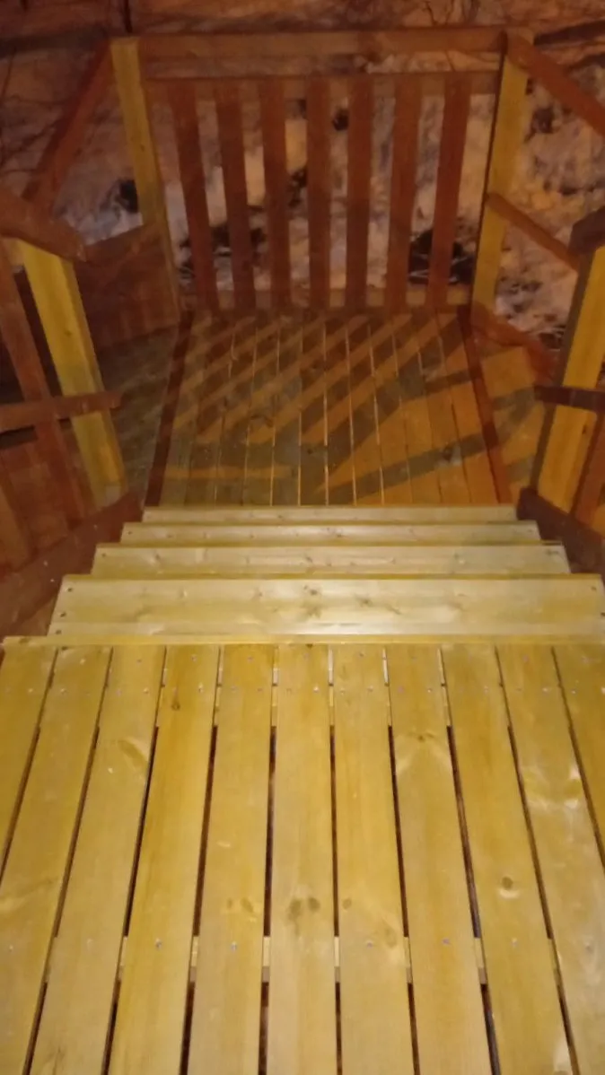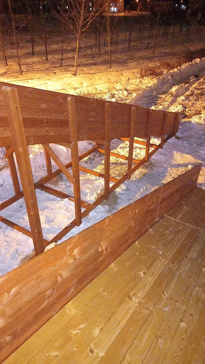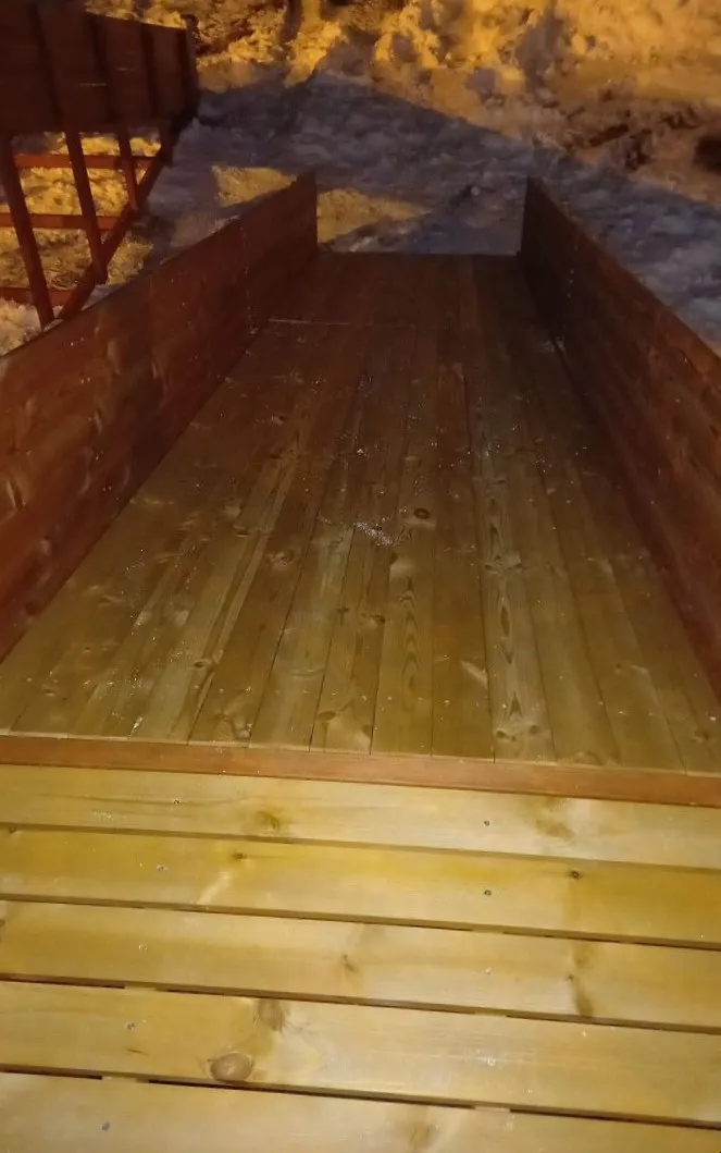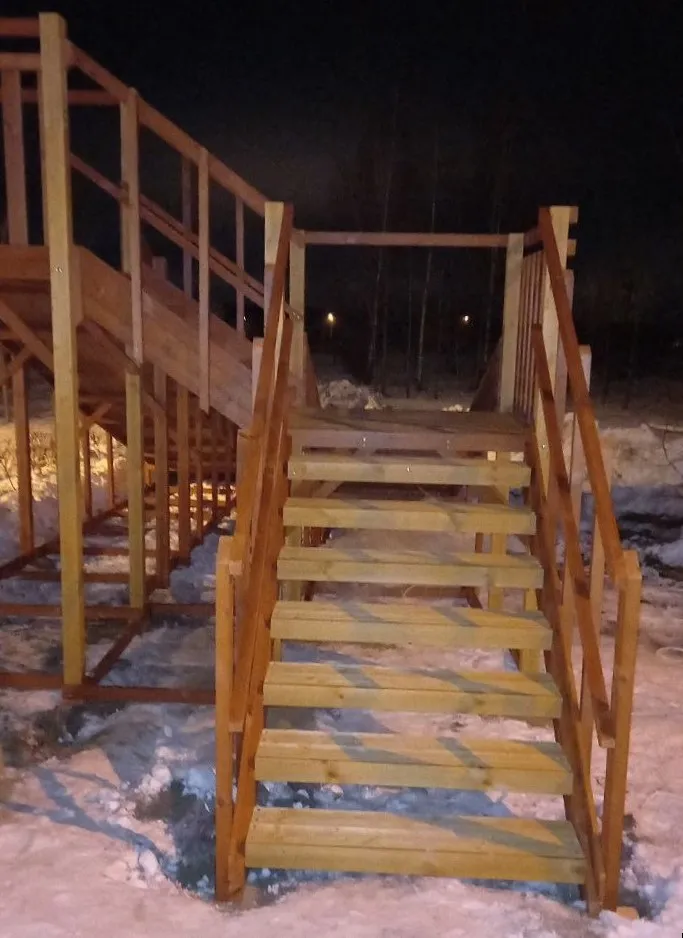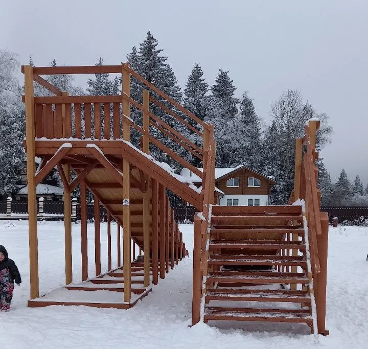 Горка изготовлена из прочного клеёного бруса камерной сушки, соответствует ГОСТ и имеет декларацию ТР ЕАЭС 038/2016, что позволяет устанавливать её не только в частных дворах, но и в общественных местах. Продуманная конструкция обеспечивает долговечность и безопасность: скруглённые углы, антискользящие ступени и высокие перила защищают детей от травм.
