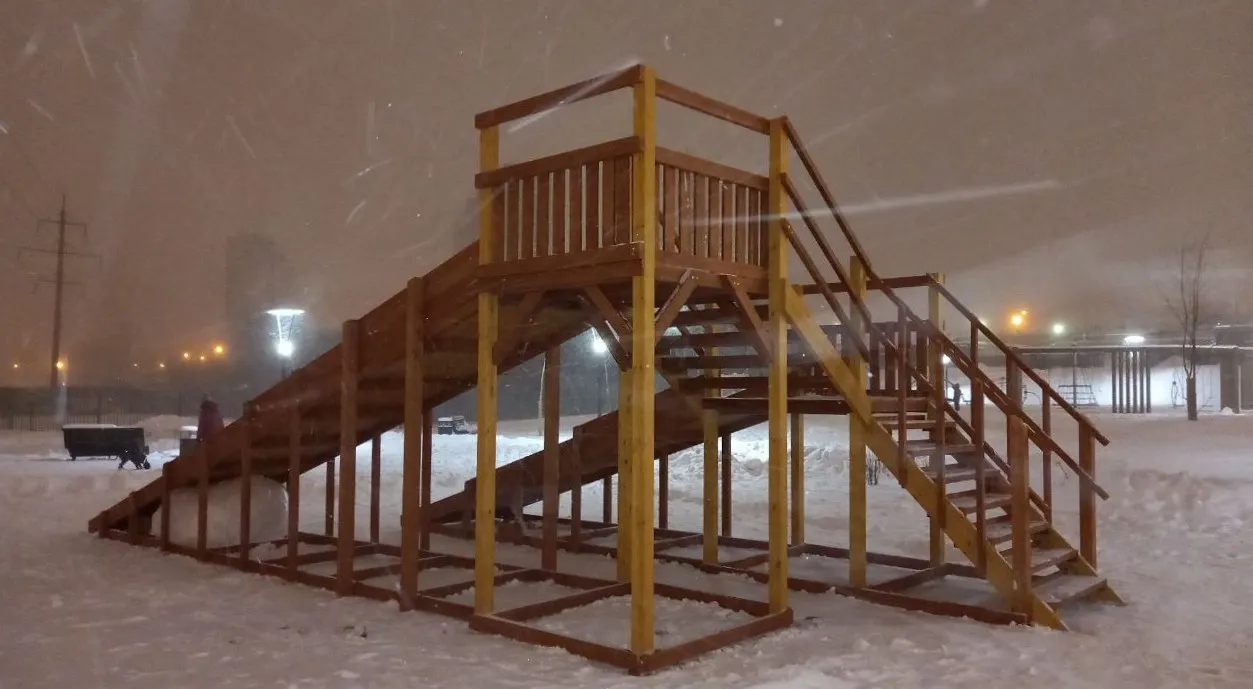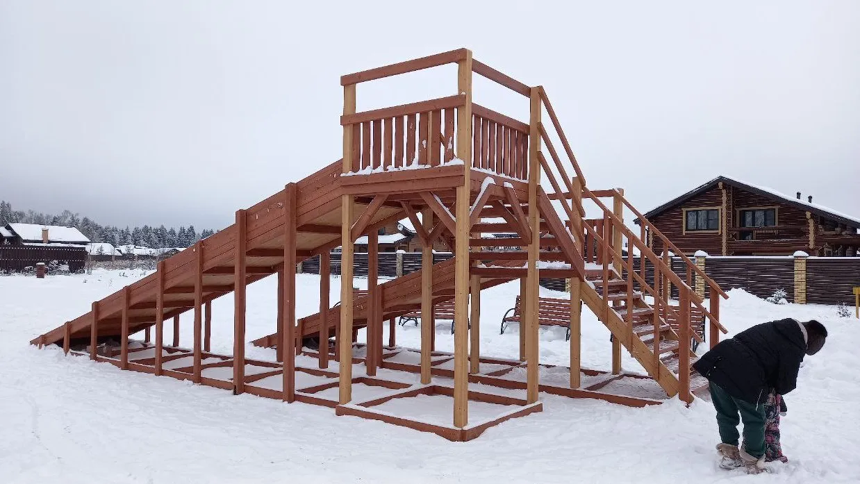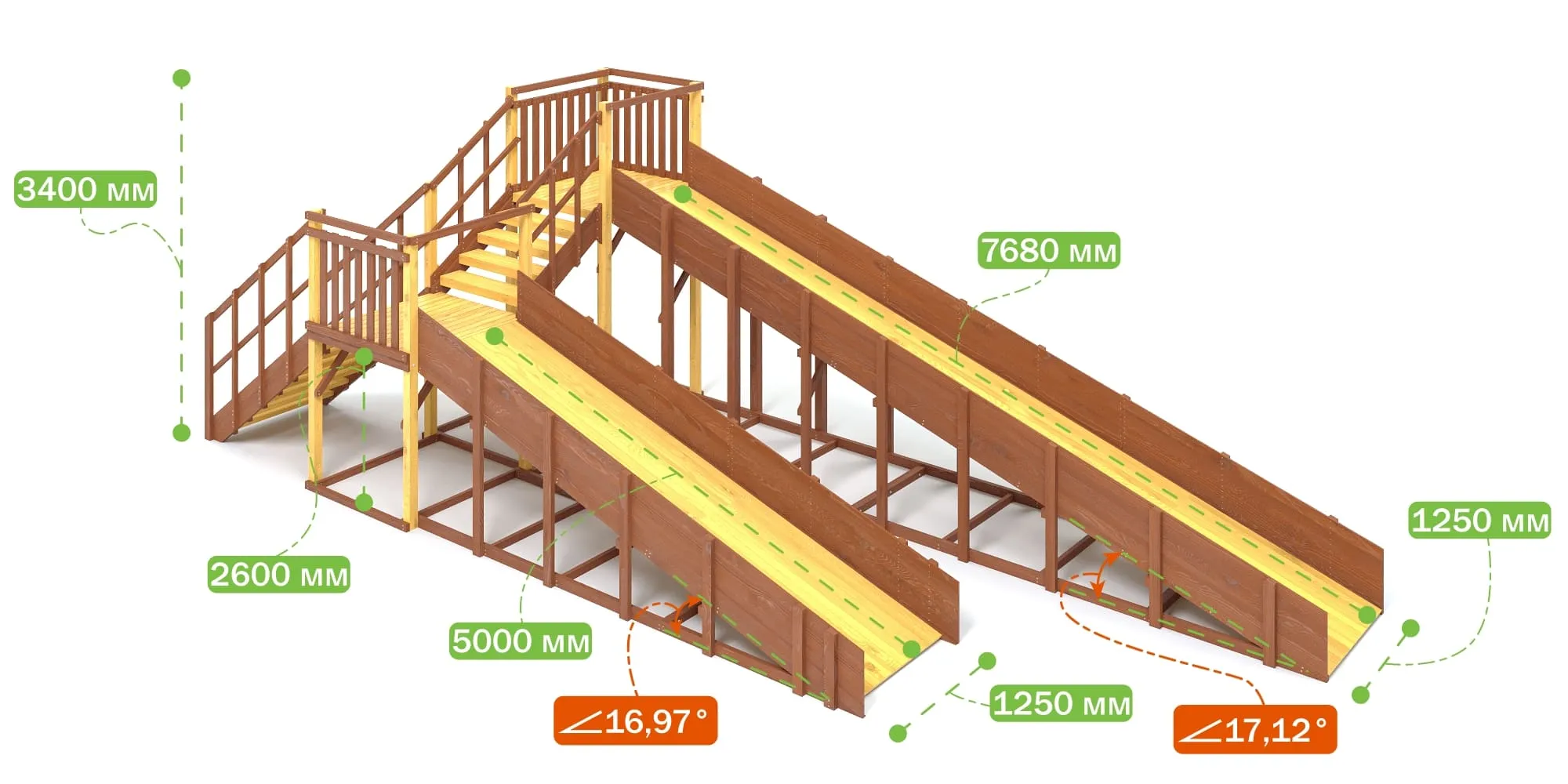 Представьте себе: зимний день, свежий снег, смех и звонкий визг восторга. Именно такие моменты дарит Савушка Зима 7. Два ската разной длины — 7,68 м и 5 м — позволяют кататься детям разного возраста, а широкая лестница делает подъём удобным и безопасным.