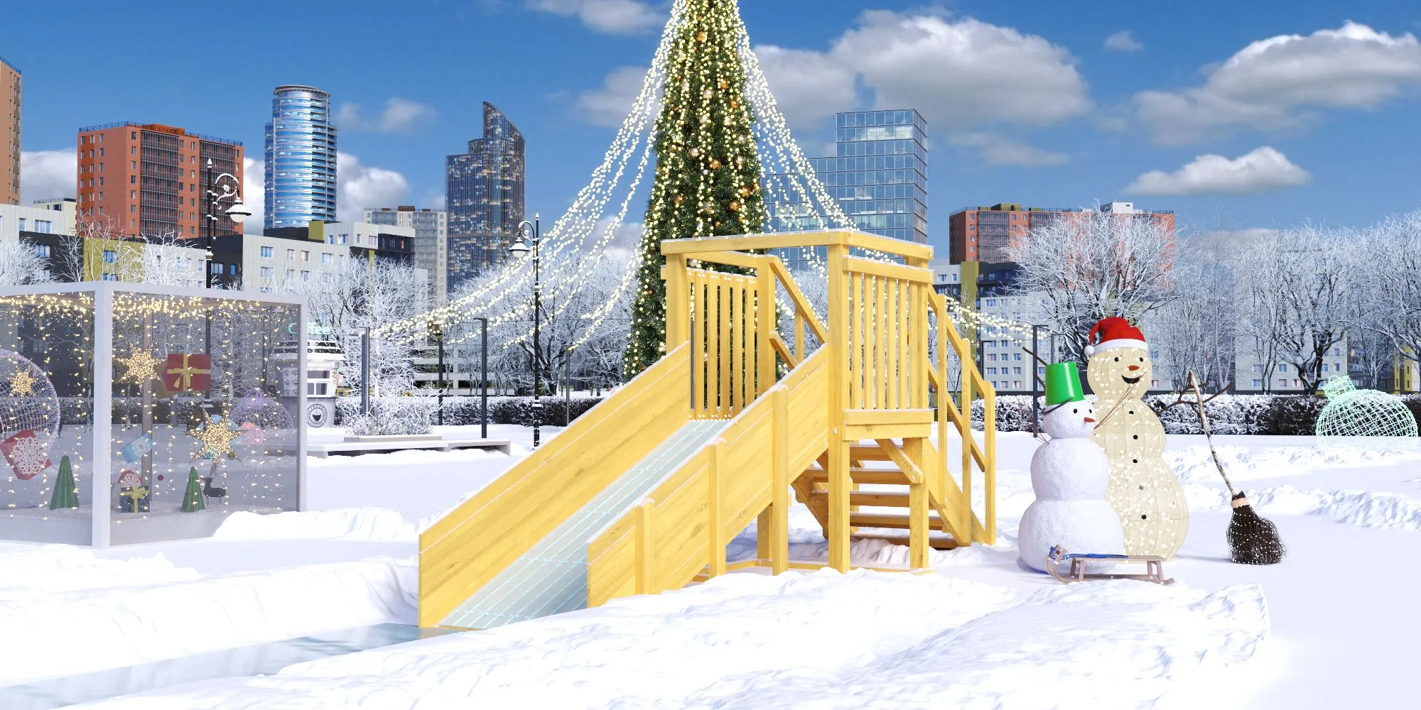 Каркас сделан из клеёного бруса — прочного и экологичного материала, который не боится влаги и мороза. Все зимние горки Савушка соответствуют ГОСТ и имеют Декларацию о соответствии ТР ЕАЭС 038/2016. Горку можно устанавливать как во дворе частного дома, так и в детских садах, школах и парках.