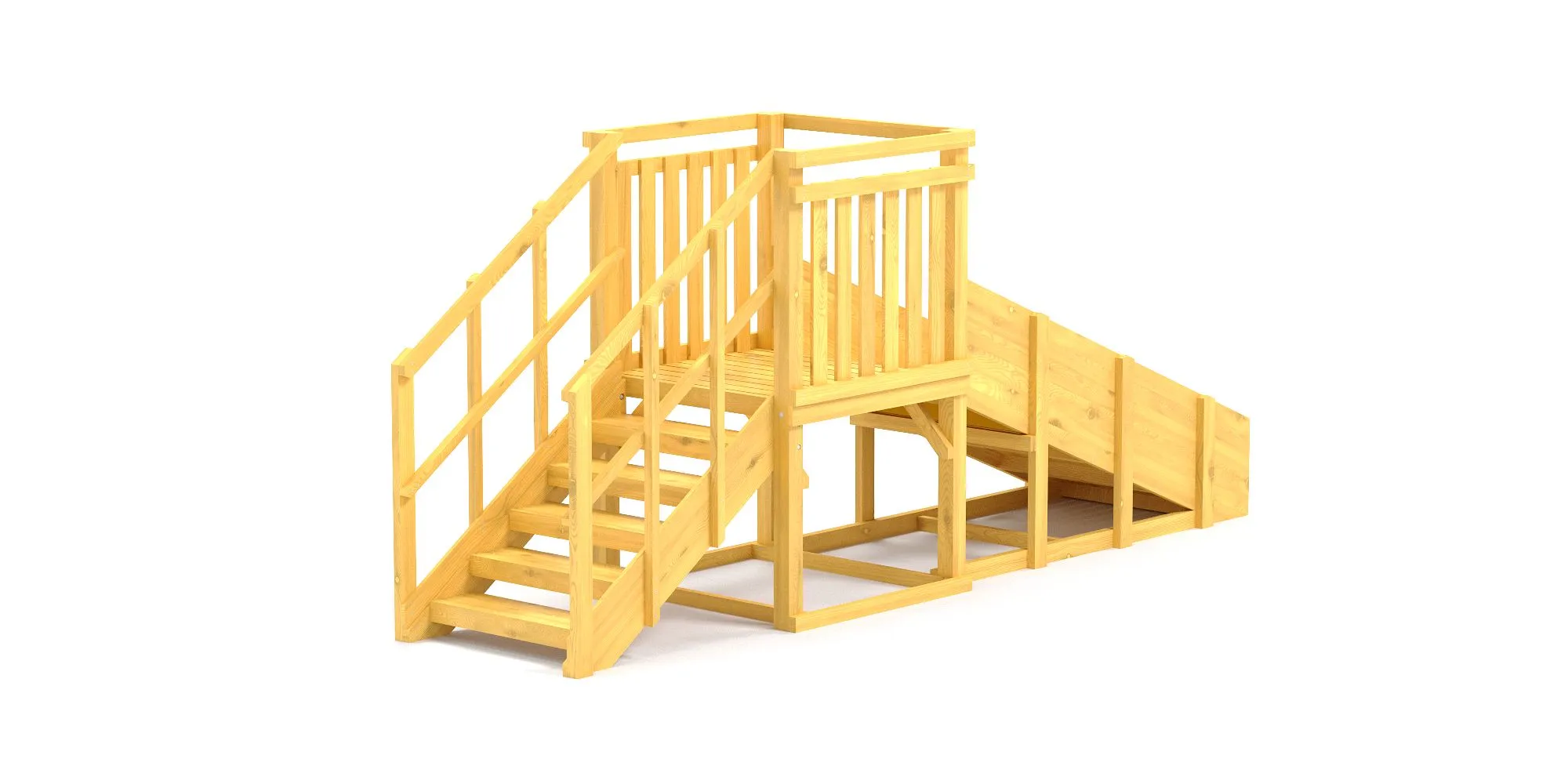 - Лестница с перилами и высокие бортики на спуске — защита для активных игр.